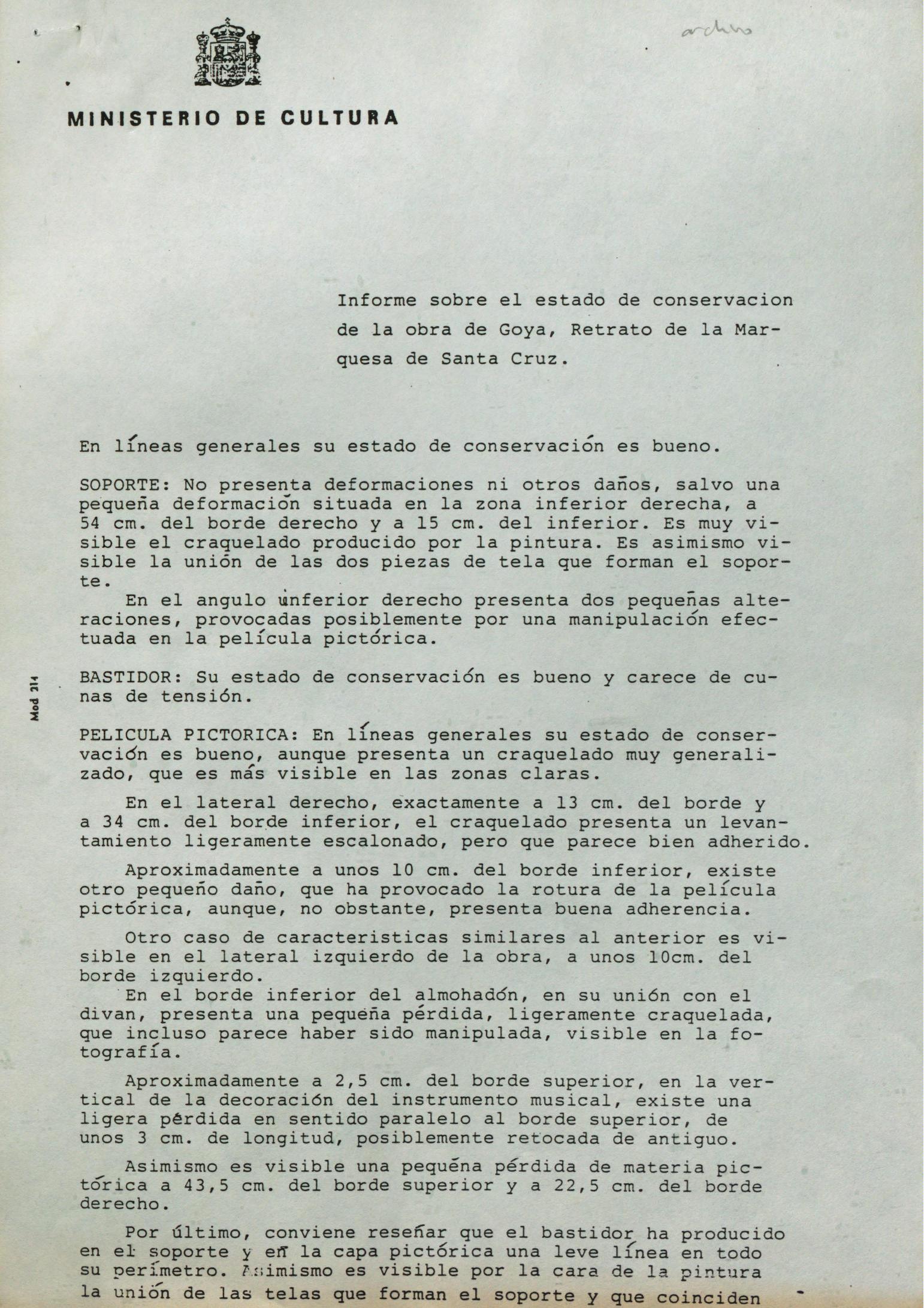 Informe de conservación del "Retrato de la Marquesa de Santa Cruz", de Francisco de Goya, expuesto en la National Gallery Art de Washington (Estados Unidos de América)