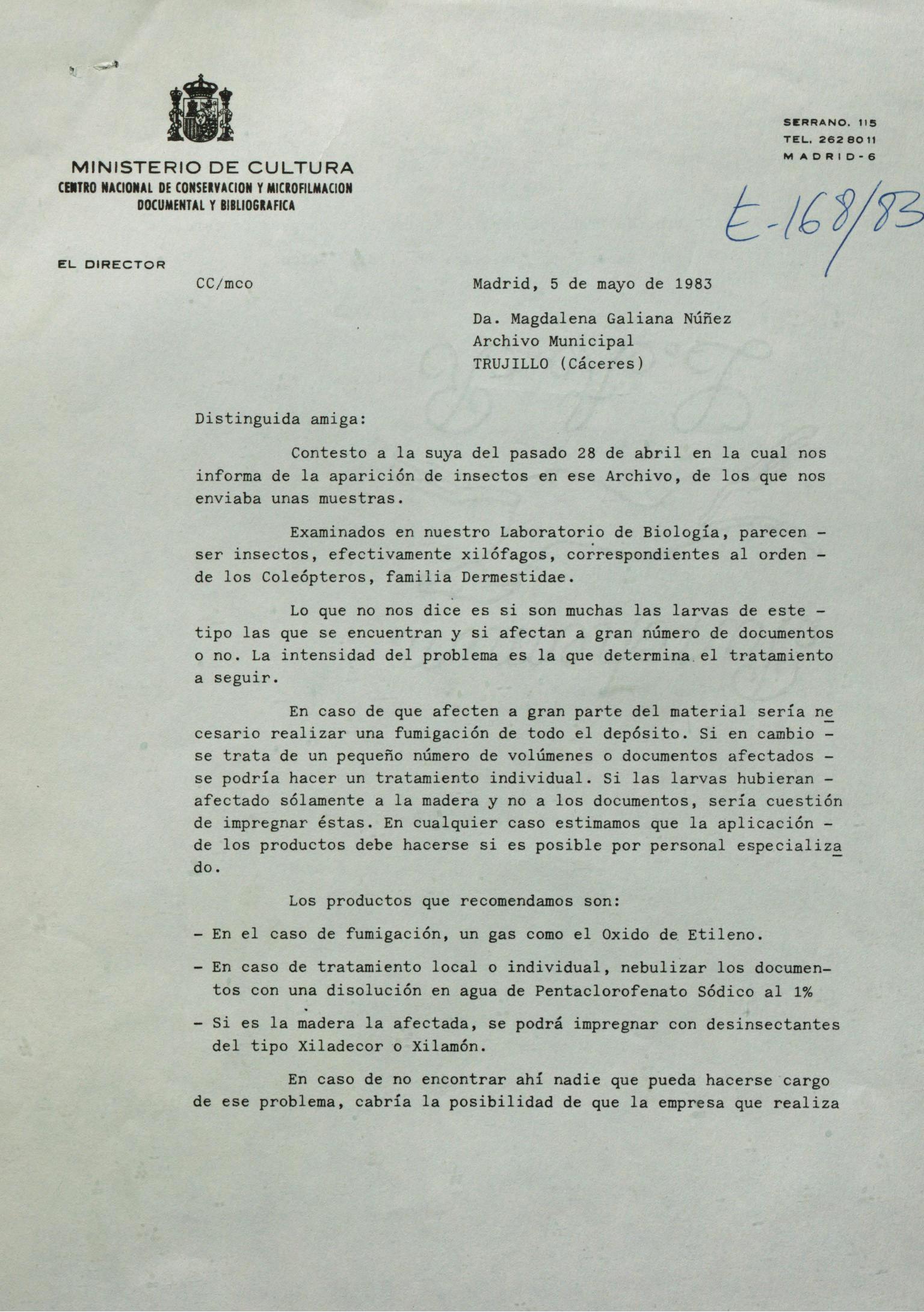 Informe de identificación biológica de las larvas de insectos aparecidas en el Archivo Municipal de Trujillo (Cáceres)