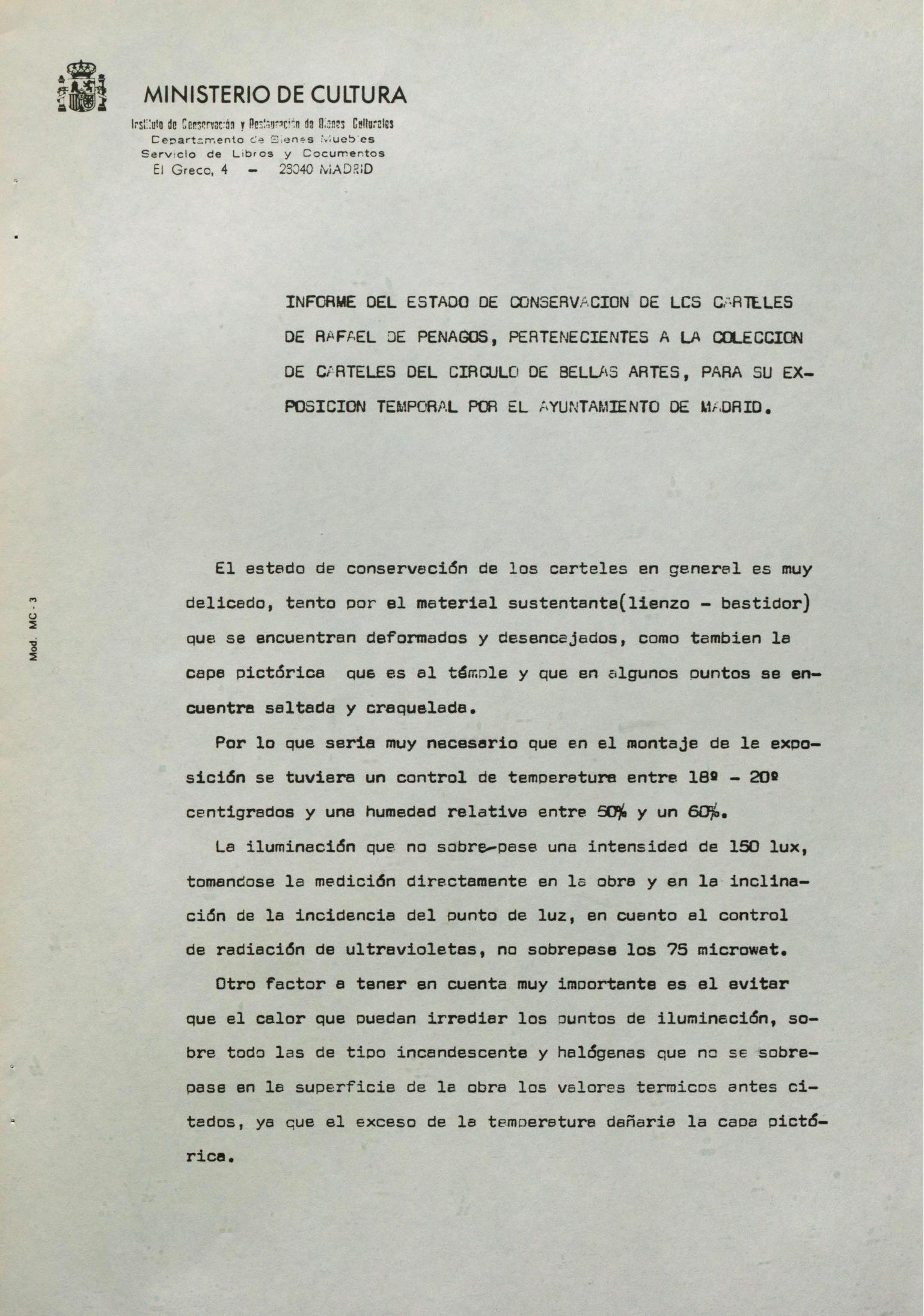 Informe de conservación de los carteles de Rafael Penagos de la colección del Círculo de Bellas Artes (Madrid)
