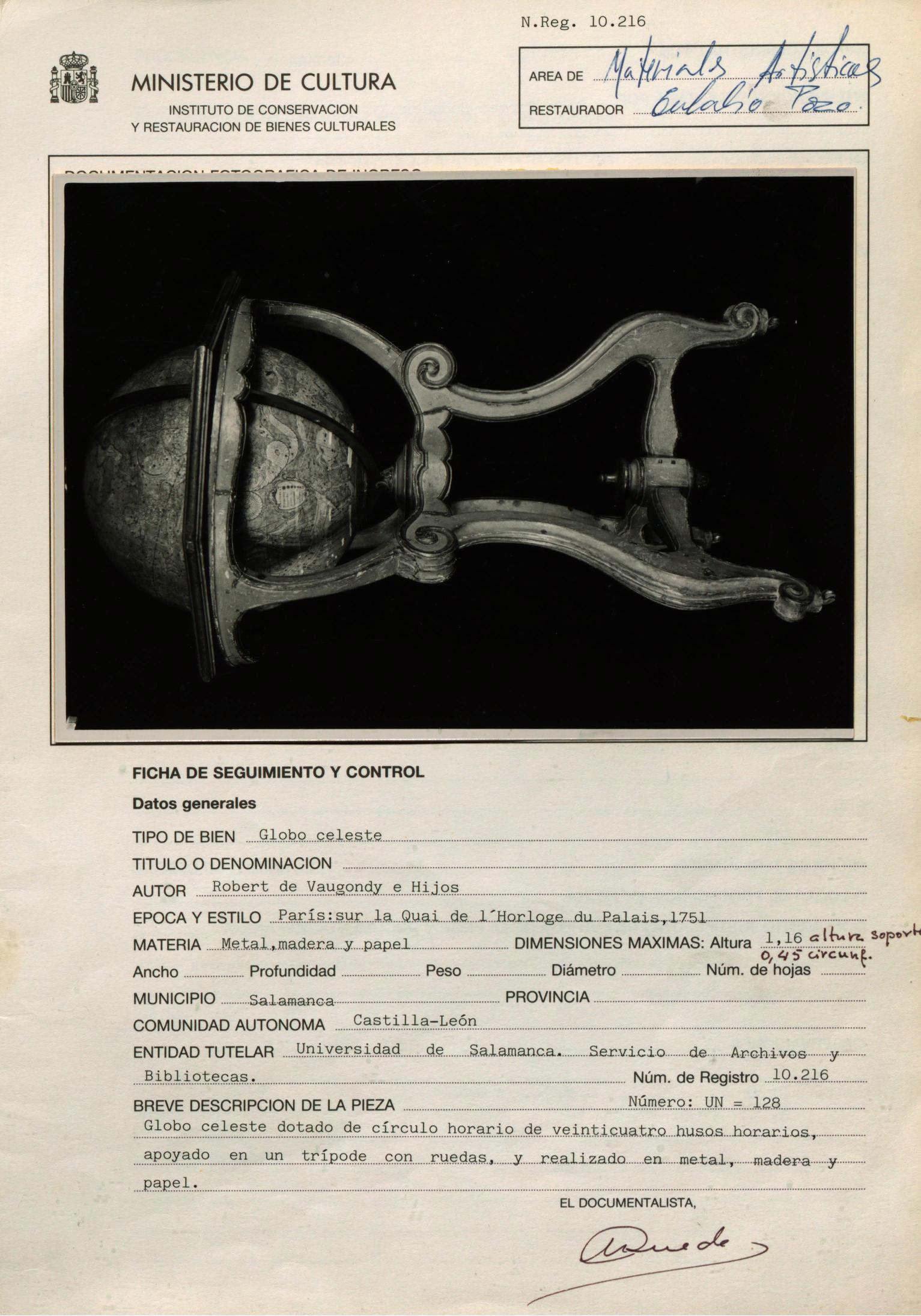 Restauración de un globo celeste, de Robert de Vaugondy e hijos, procedente de la Universidad de Salamanca