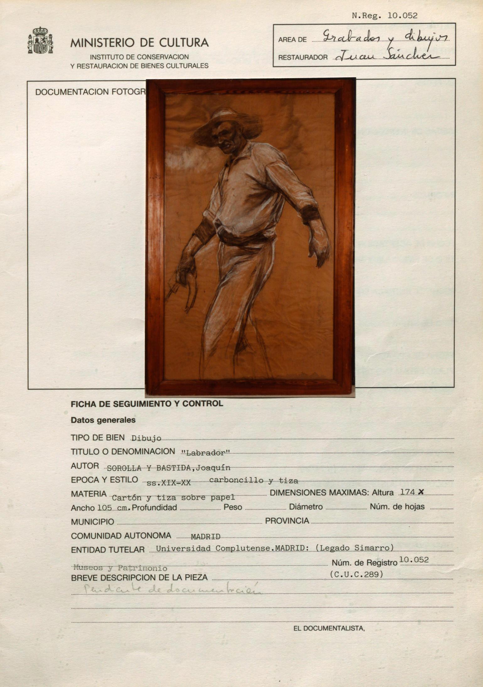 Restauración de un dibujo a carbón y clarión con título "Pescador valenciano" del Legado Simarro, de Joaquín Sorolla procedente de la Universidad Complutense de Madrid