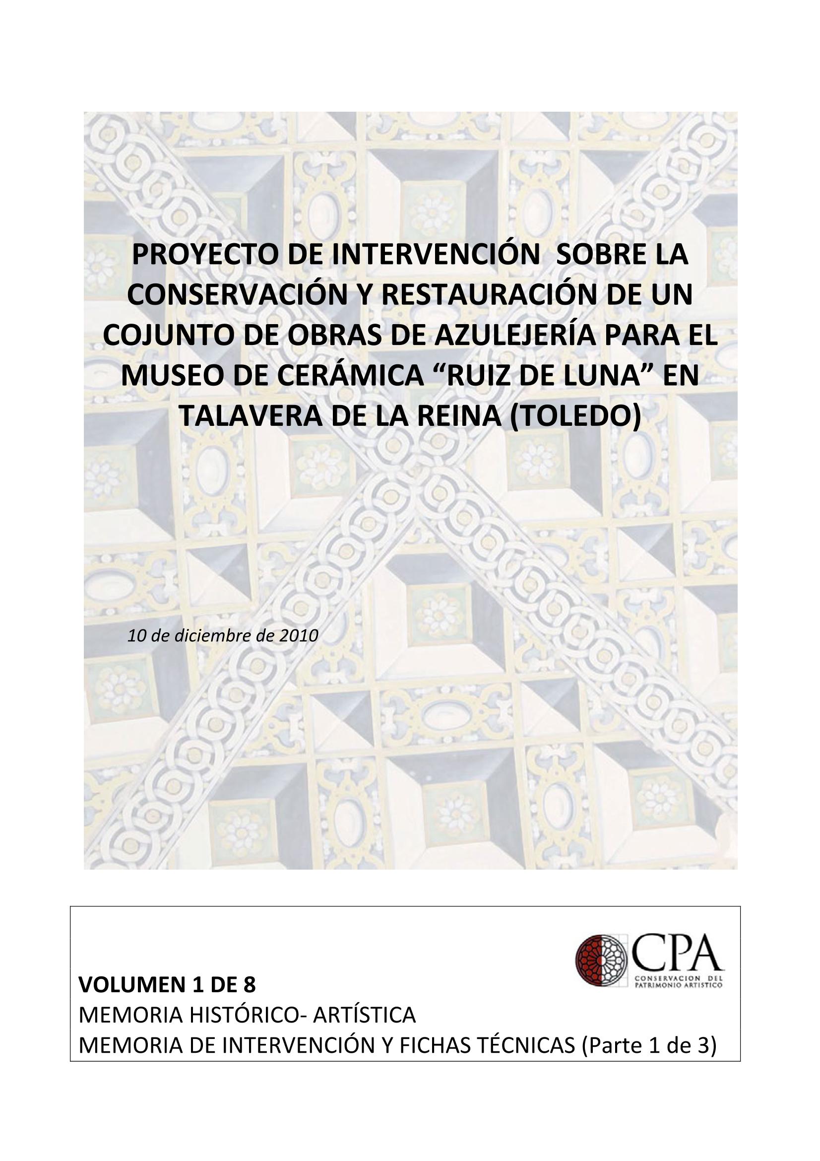 Restauración de un conjunto de obras de azulejería del Museo de Cerámica "Ruiz de Luna" de Talavera de la Reina (Toledo)