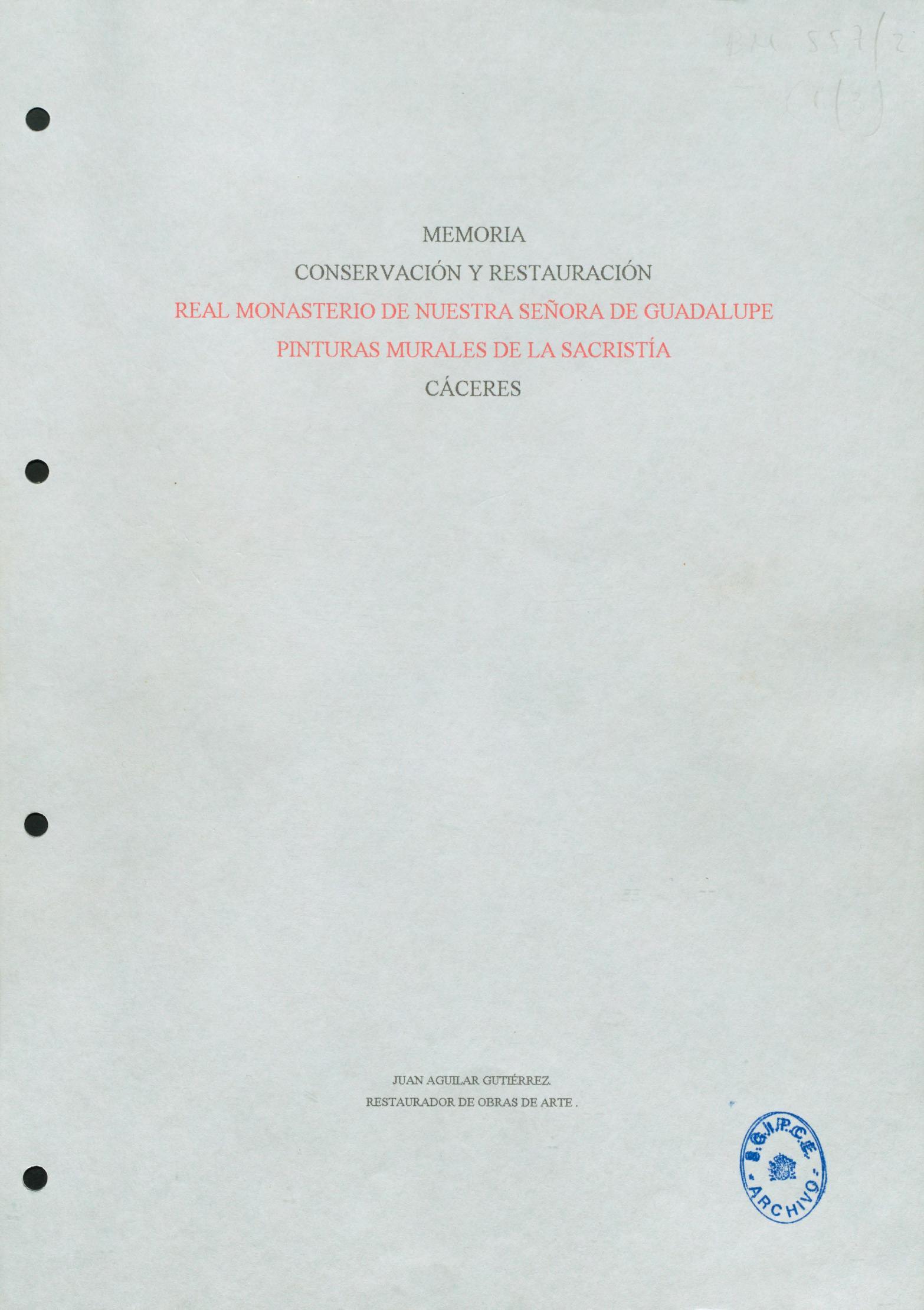 Restauración de las pinturas murales ubicacas en la sacristía del Real Monasterio de Nuestra Señora de Guadalupe (Cáceres)