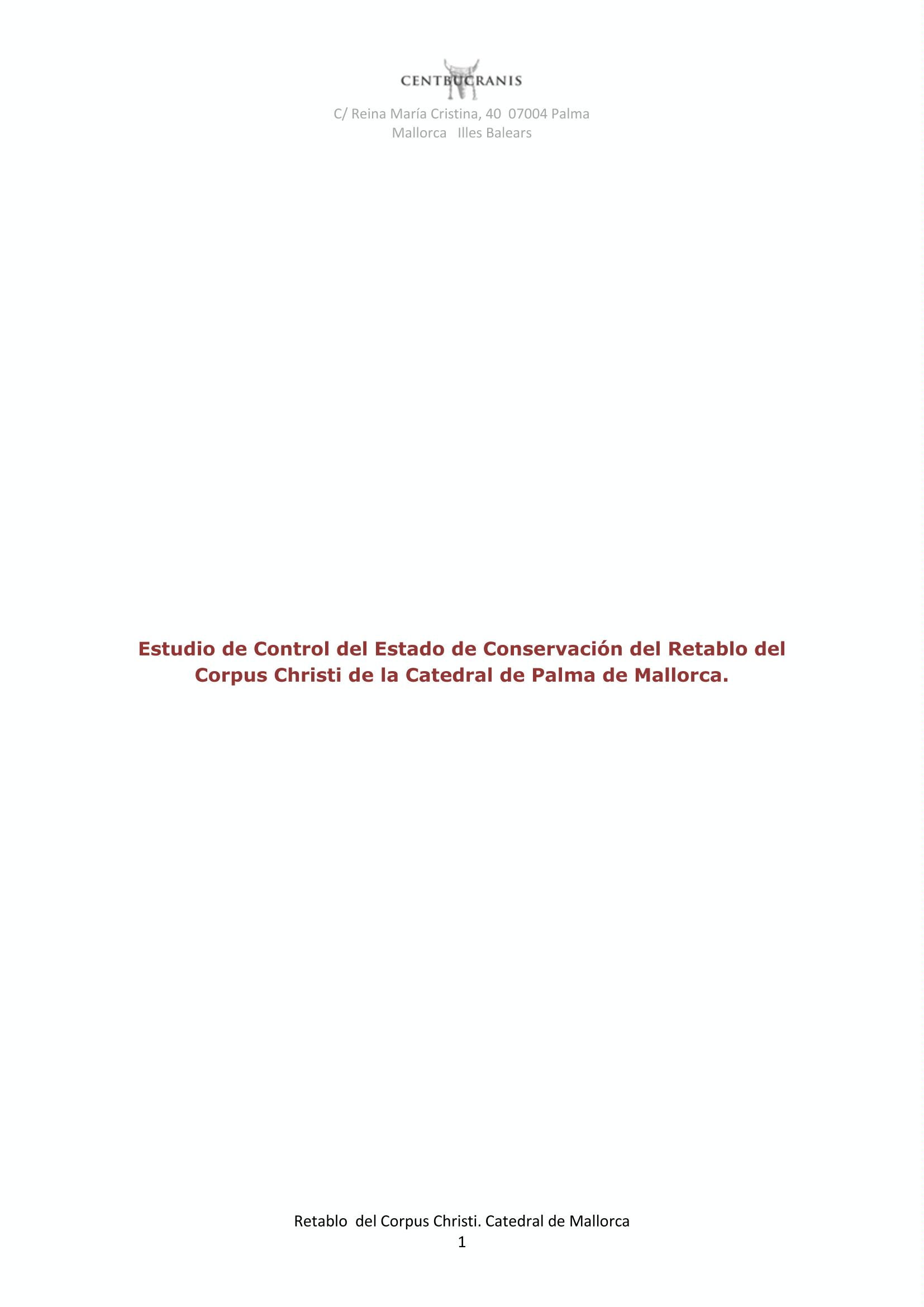 Informe de conservación del "Retablo del Corpus Christi", ubicado en la Catedral de Palma de Mallorca (Baleares)