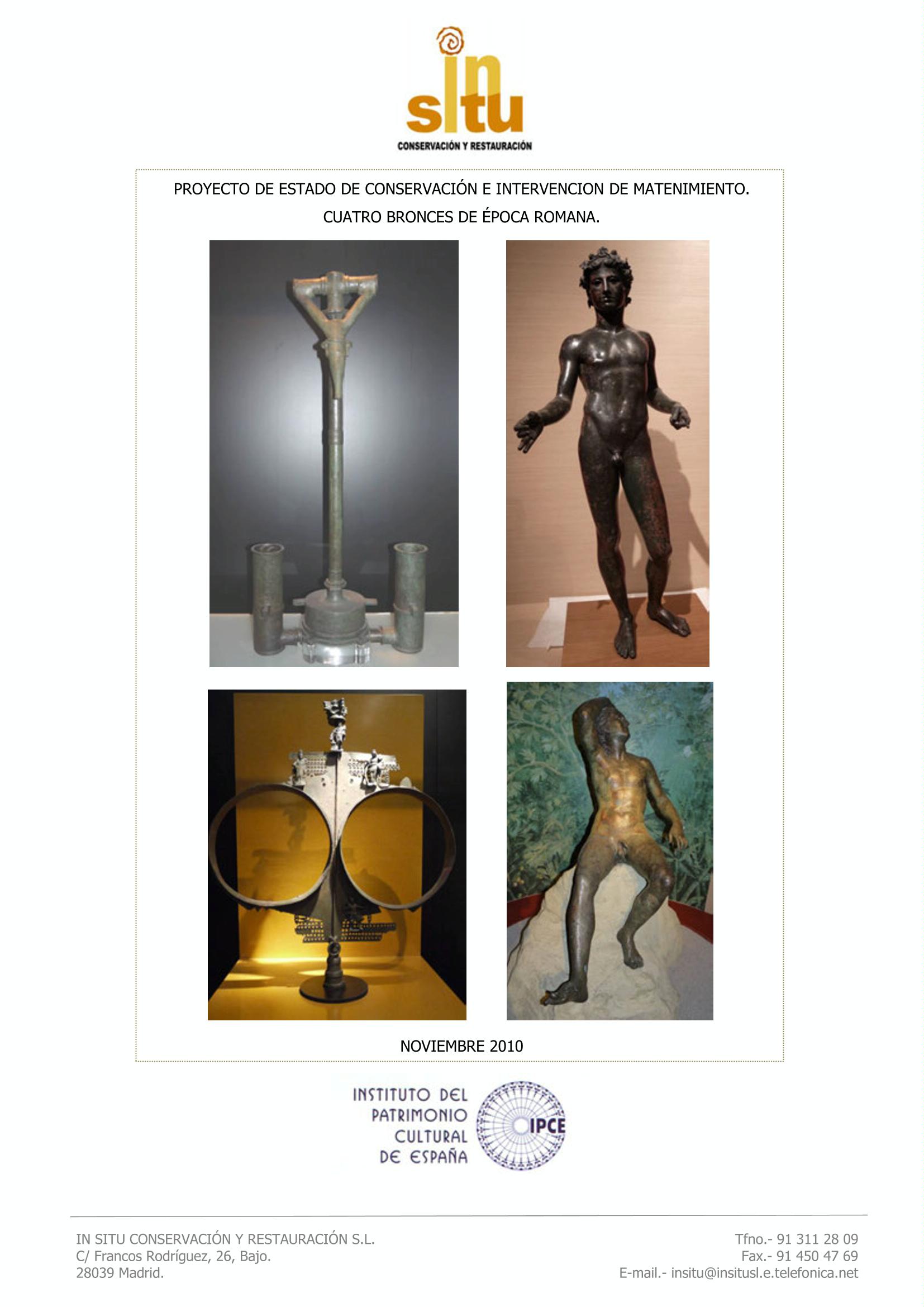 Restauración de cuatros bronces de época romana, procedentes del Museo Arqueológico Nacional (Madrid), Museo Arqueológico de Antequera y Museo de Prehistoria de Valencia