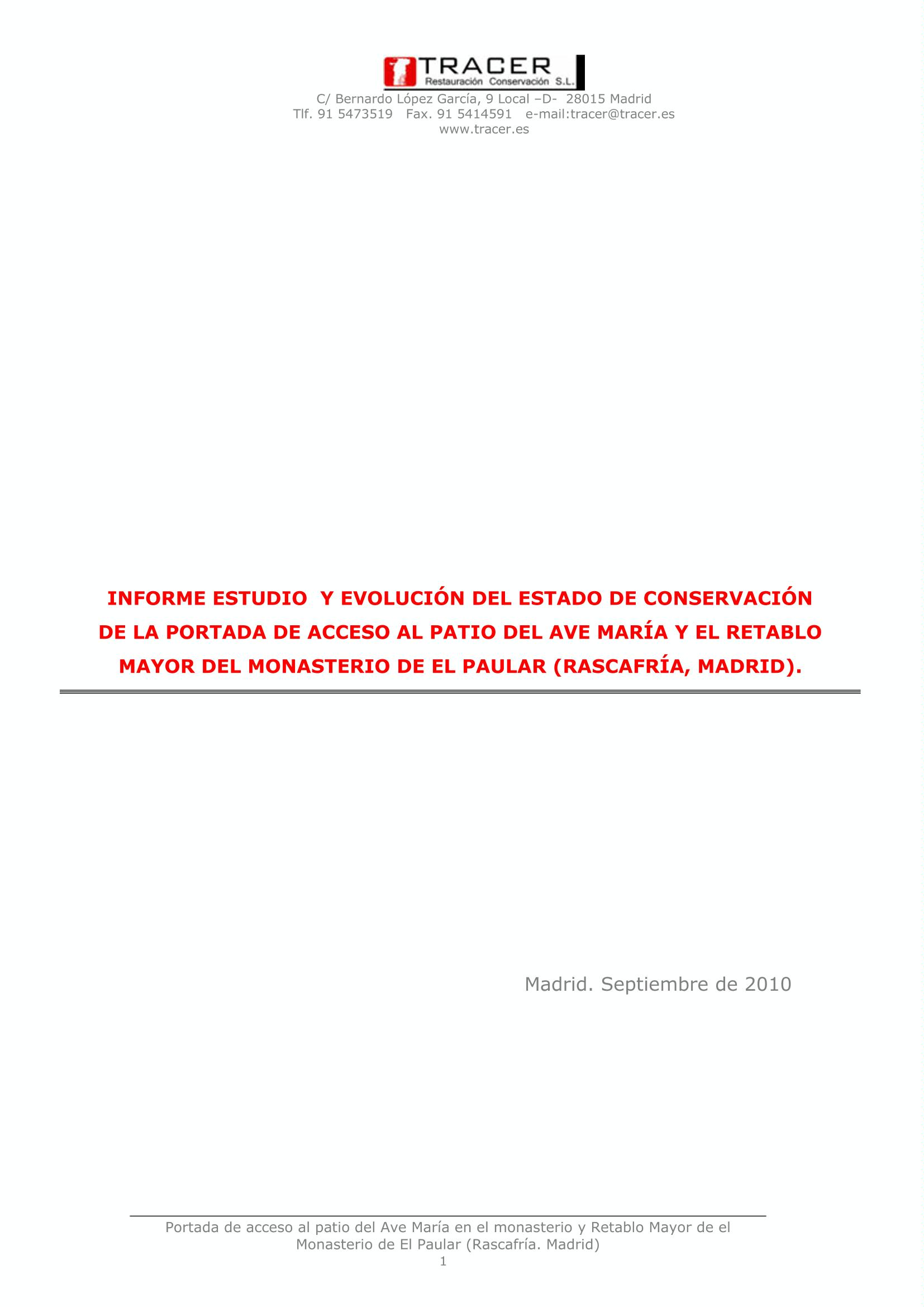 Informe y evolución del estado de conservación de la portada de acceso al "Patio del Ave María", obra de Rodrigo Gil de Hontañón y el retablo mayor del Monasterio de El Paular de Rascafría (Madrid)