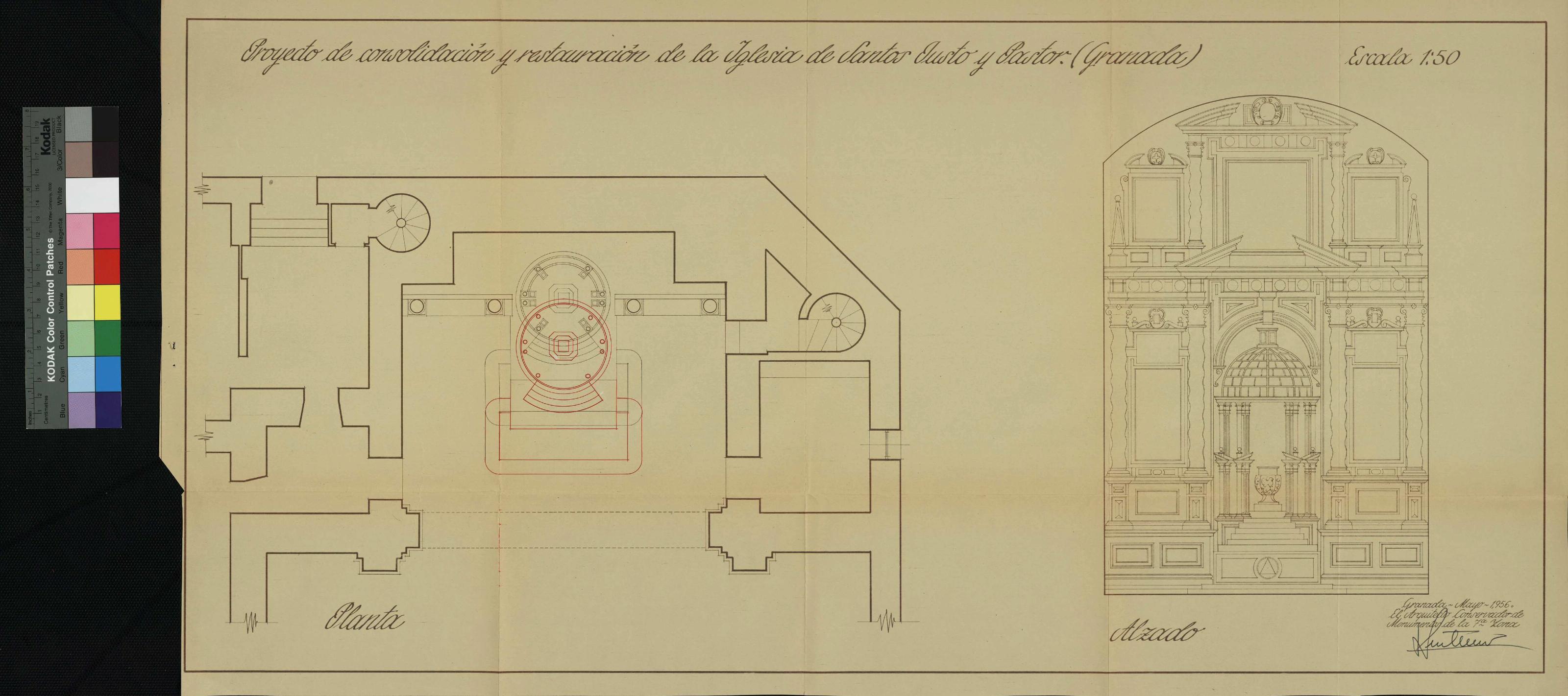 Iglesia de los Santos Justo y Pastor: Iglesia de los Santos Justo y Pastor Alzado y planta del presbiterio (proyecto)