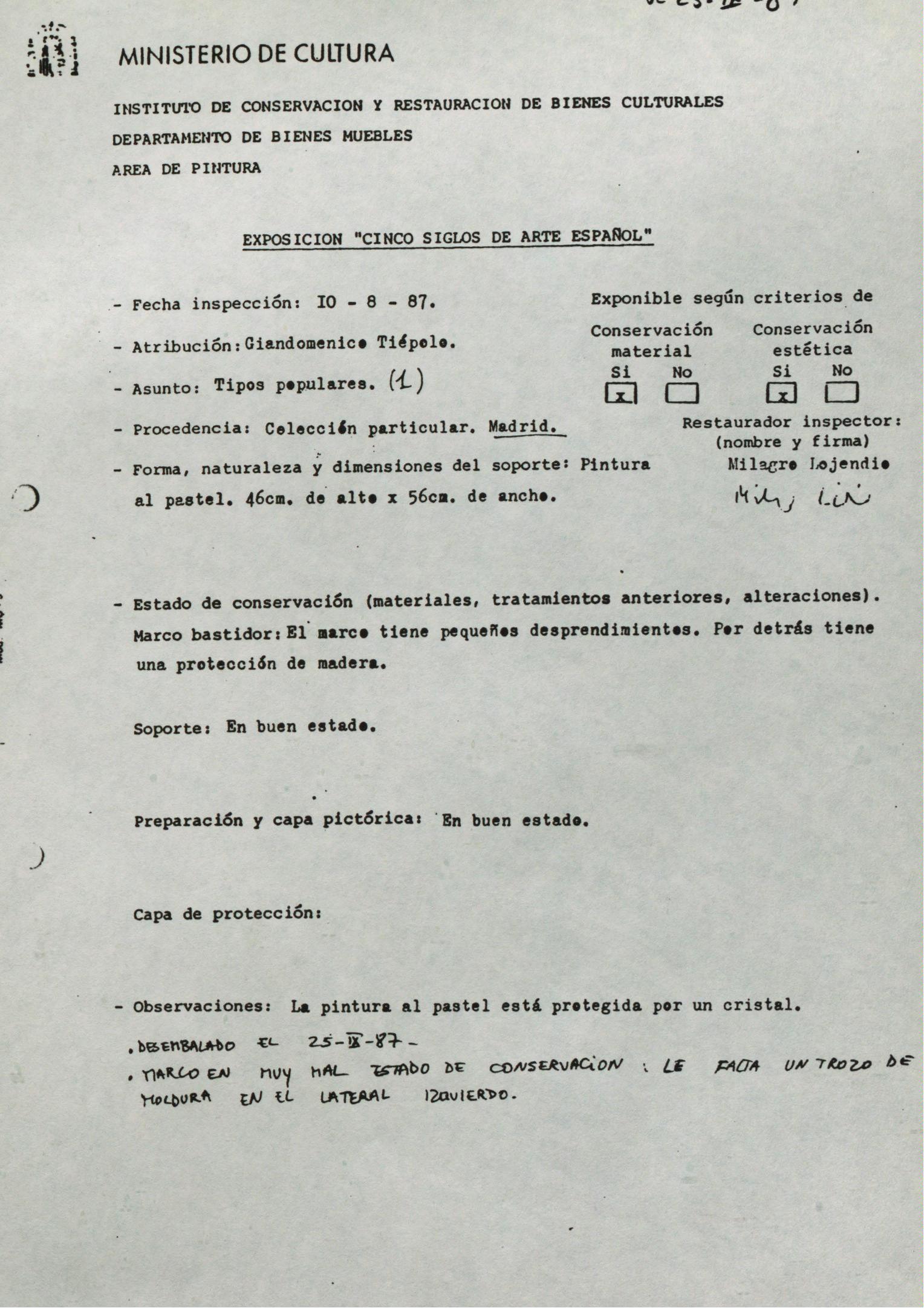 Informes sobre el estado de conservación de piezas procedentes de la colección particular de los Duques de Fernán Núñez (Madrid)