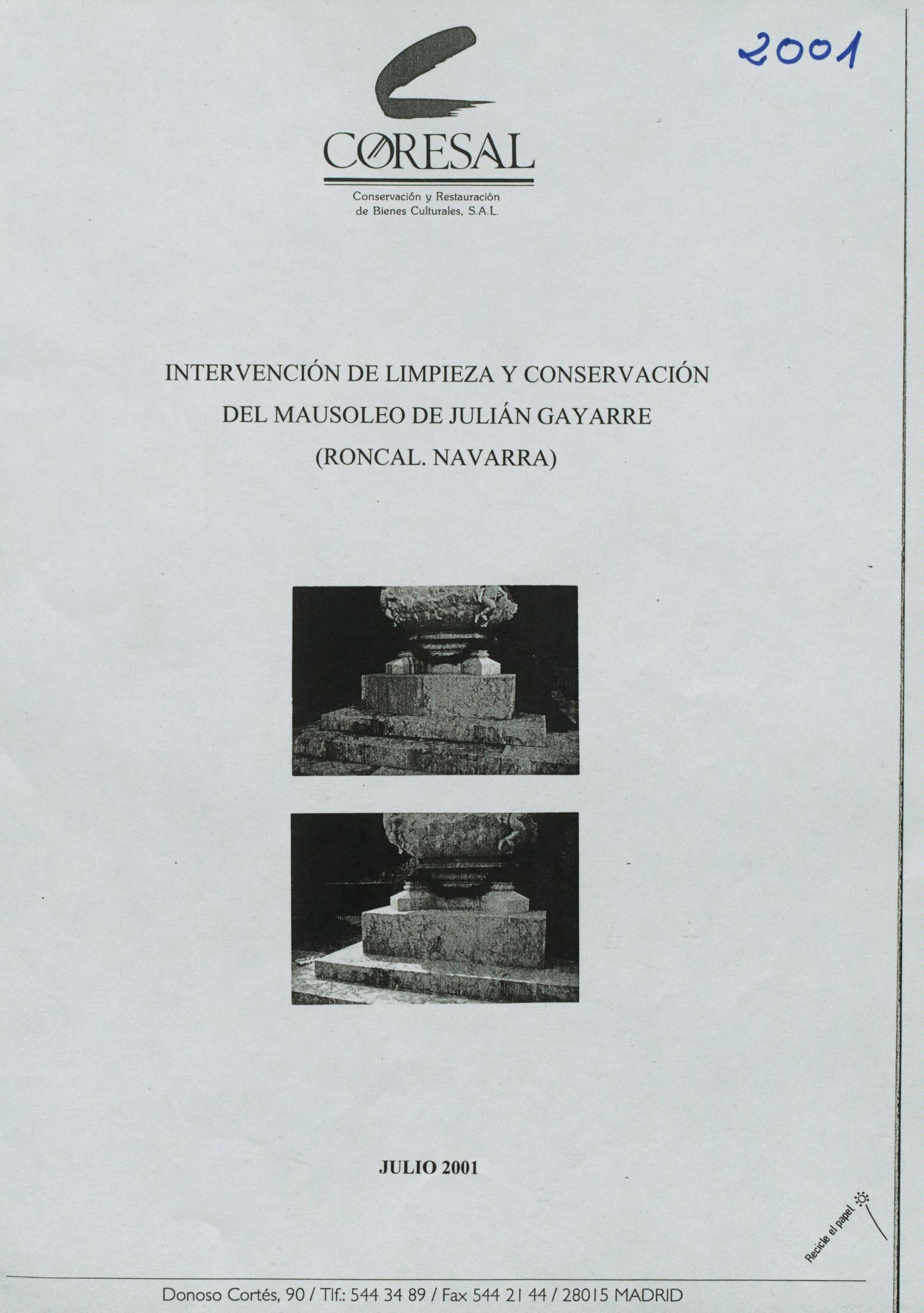 Restauración y limpieza del Mausoleo de Julián Gayarre, de Mariano Benlliure, en El Roncal (Navarra)