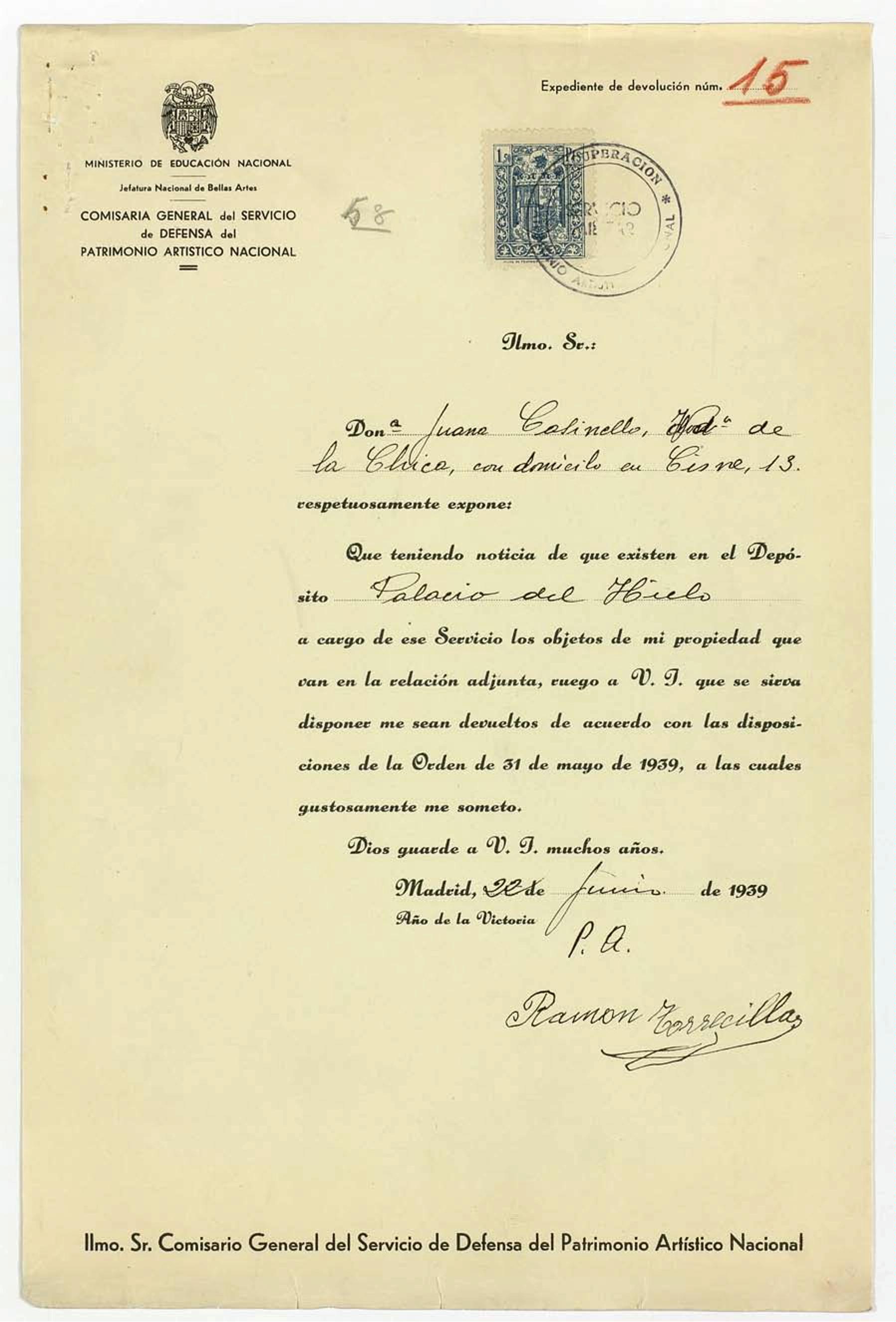 Expediente de devolución de Juana Casinello, viuda de la Chica