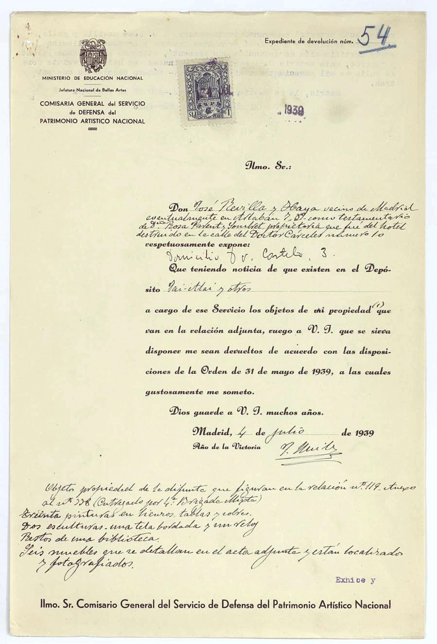 Expedientes de devolución de obras de arte