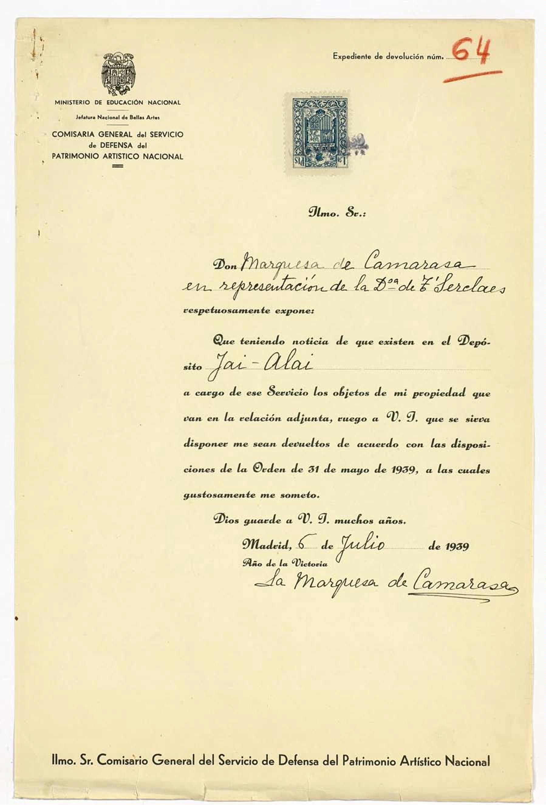Expedientes de devolución de obras de arte