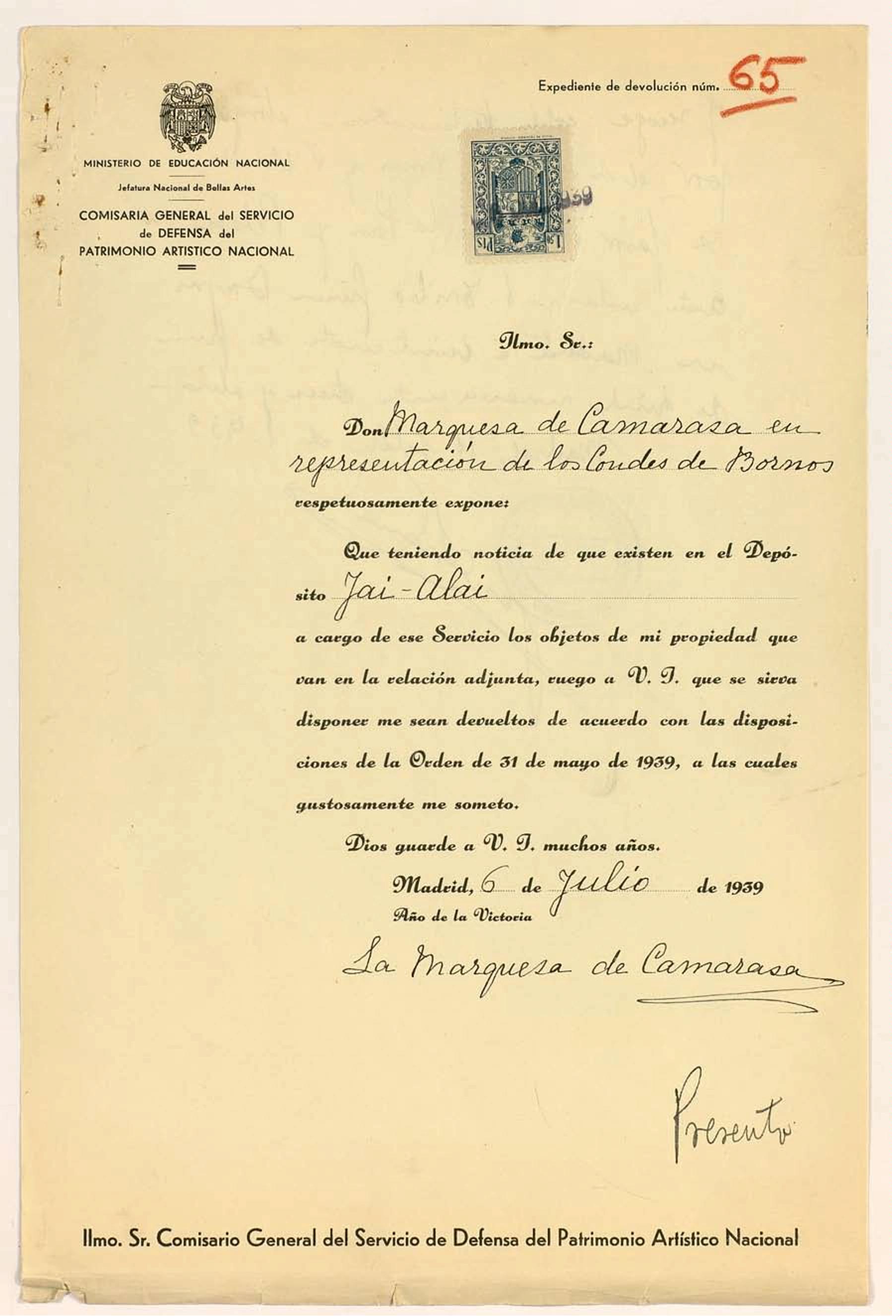 Expedientes de devolución de obras de arte
