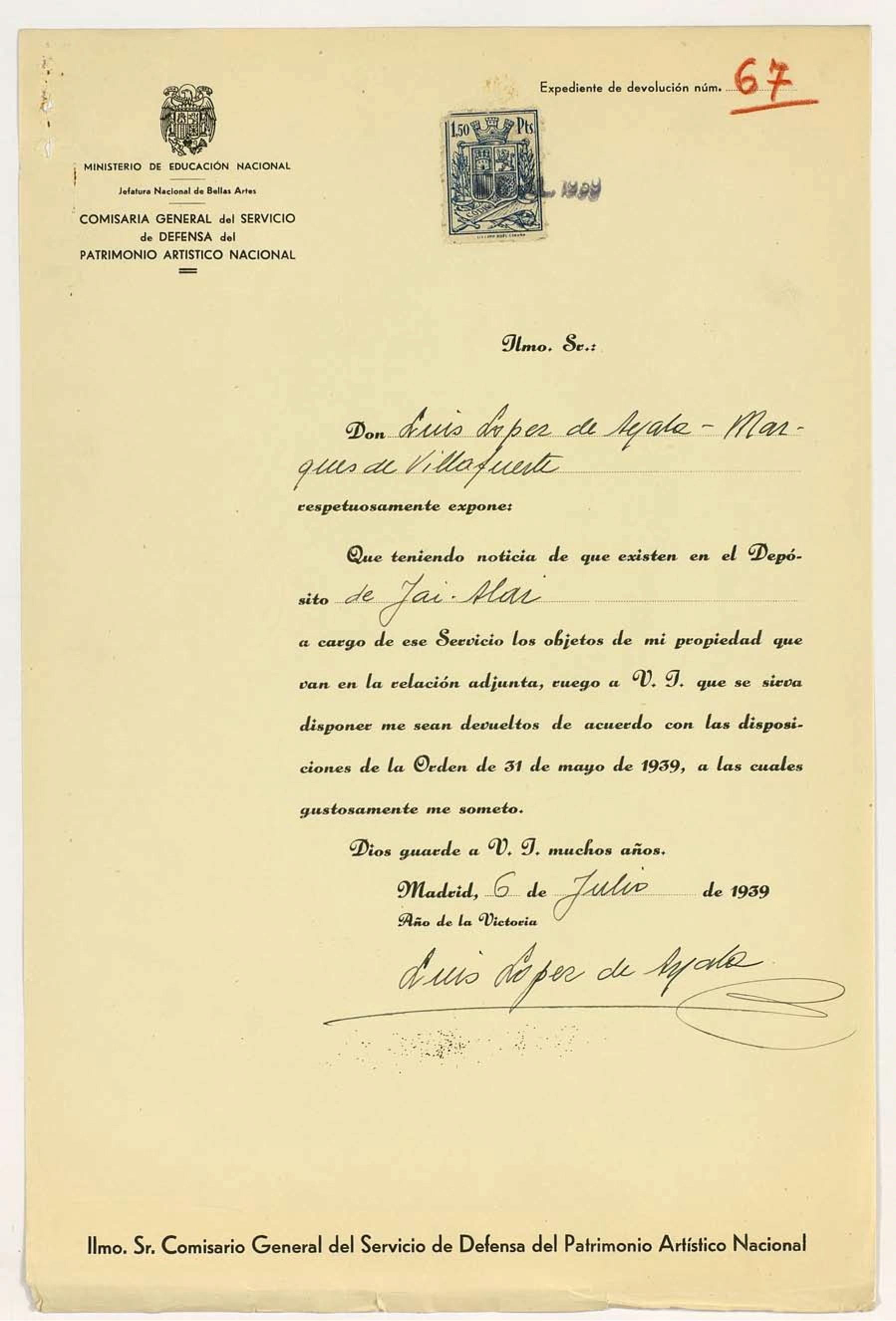 Expediente de devolución de Luis López de Ayala, marqués de Villafuerte
