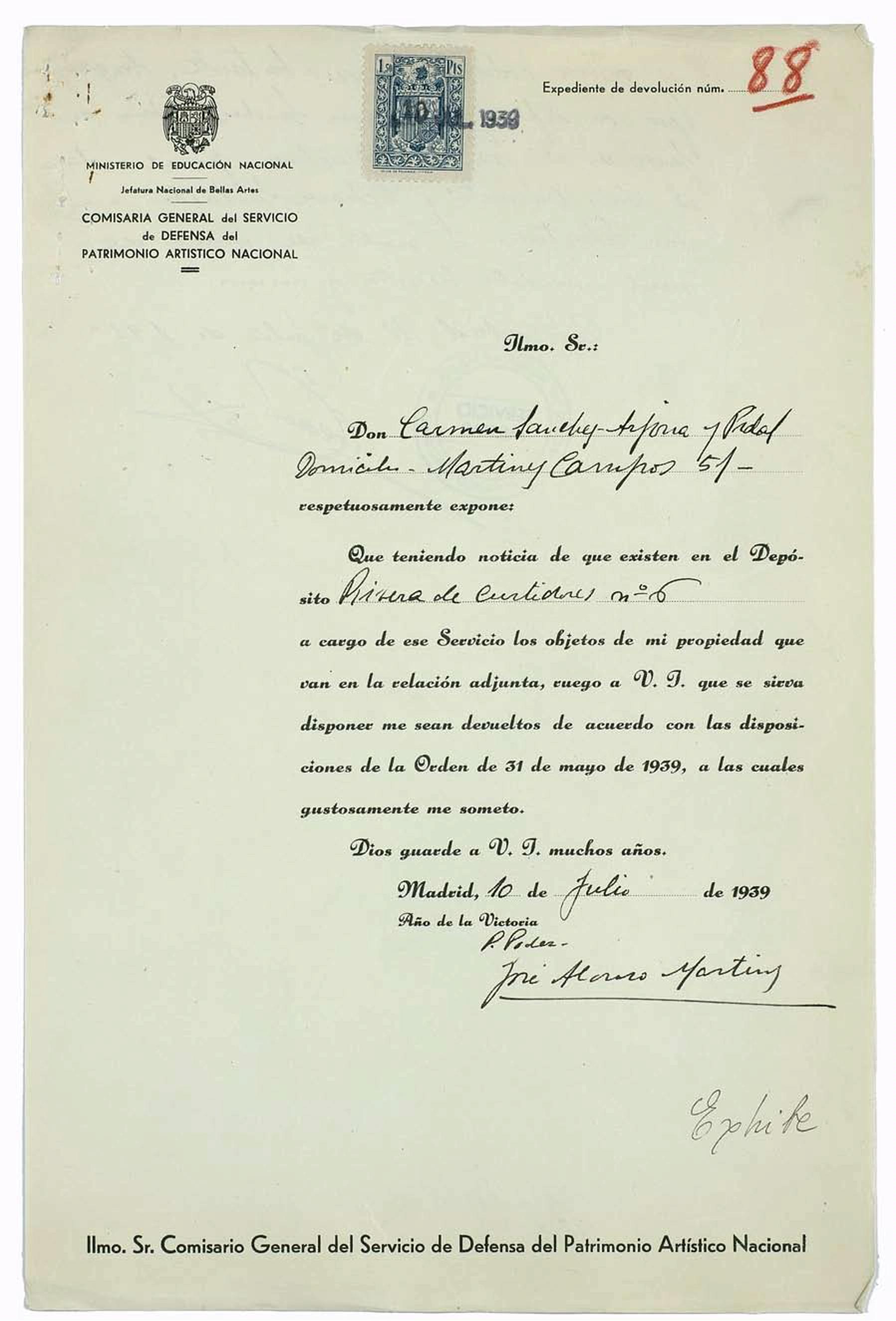 Expediente de devolución de Carmen Sánchez Arjona y Pidal