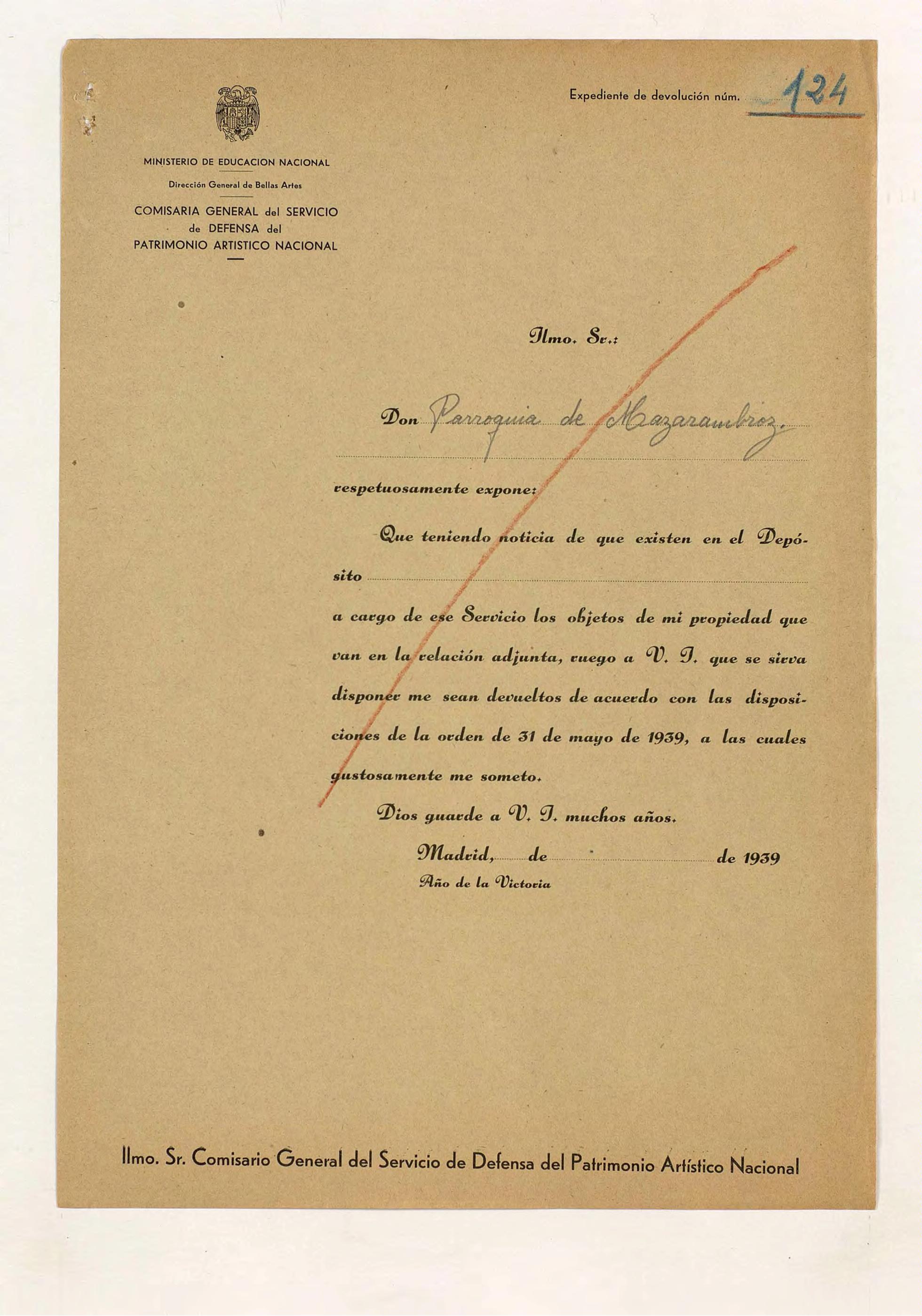 Expediente de devolución de la Parroquia de Mazarambroz (Toledo)
