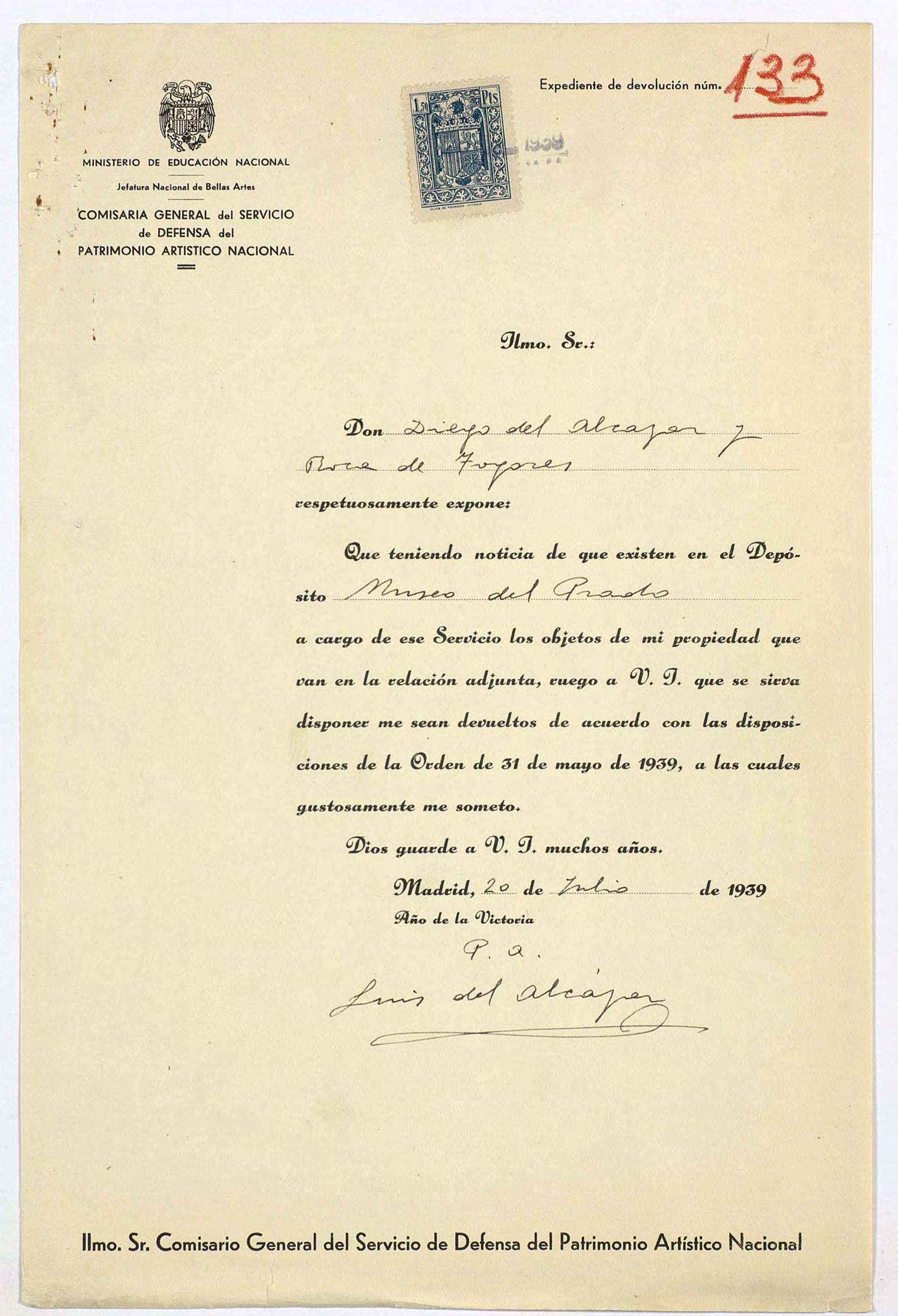 Expediente de devolución de Diego del Alcázar y Roca de Togores, marqués de la Romana