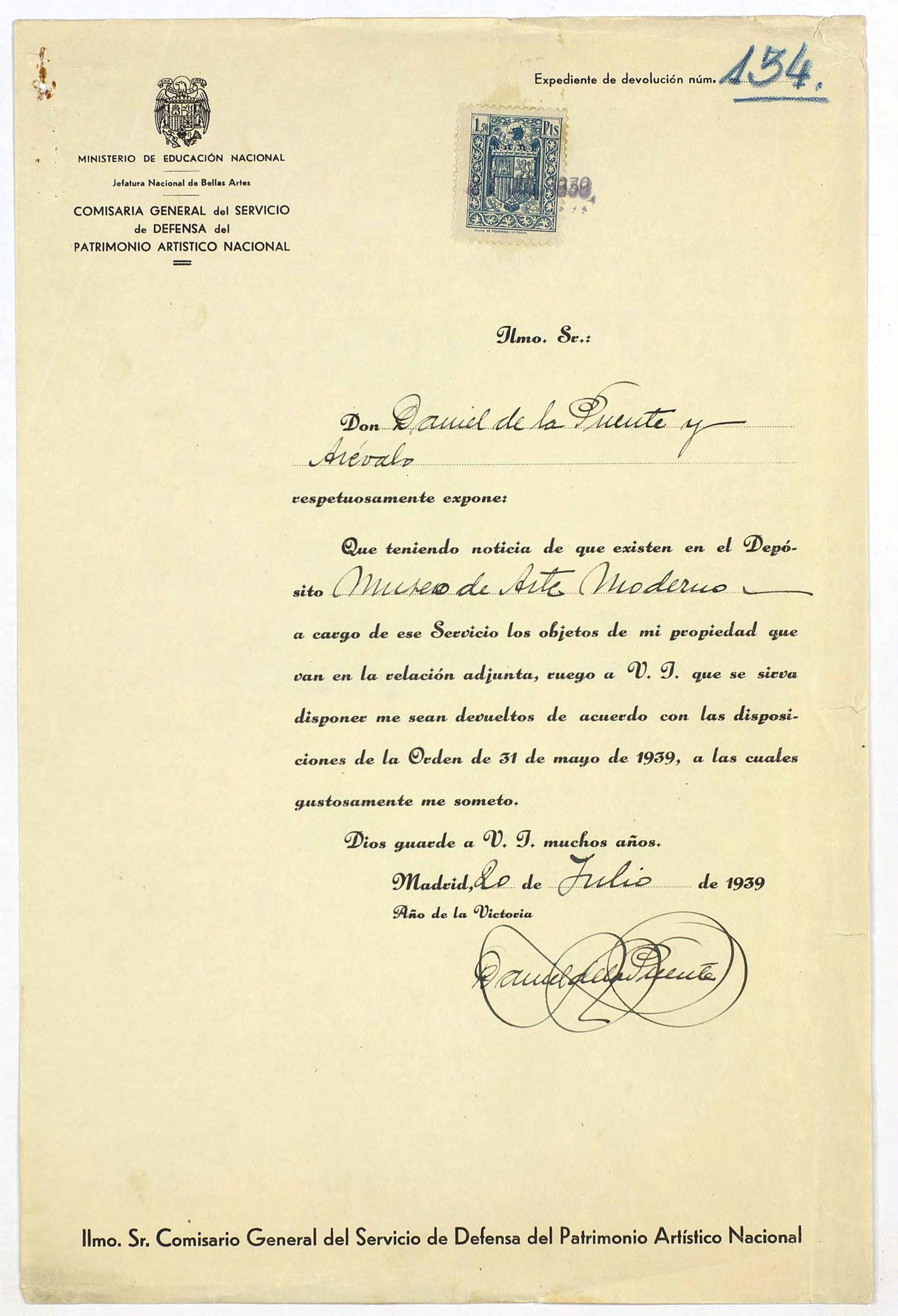 Expediente de devolución de Daniel de la Puente y Arévalo