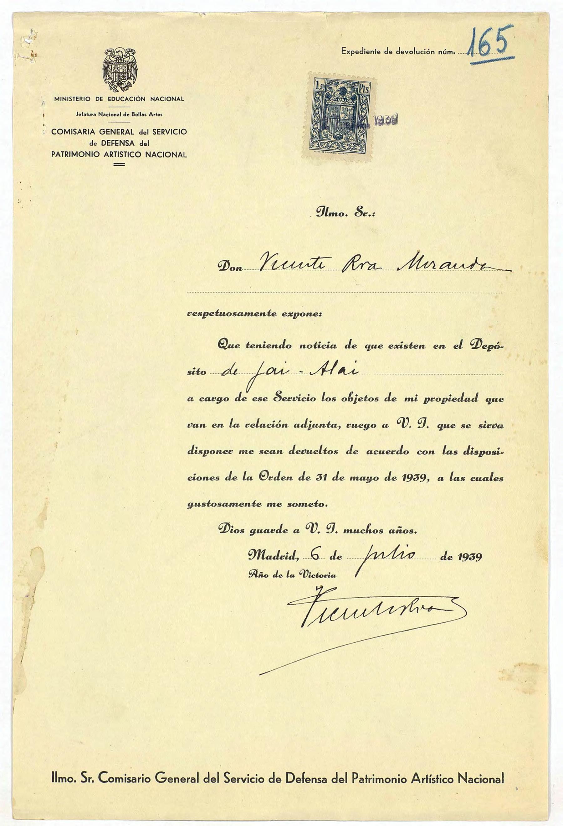 Expedientes de devolución de obras de arte