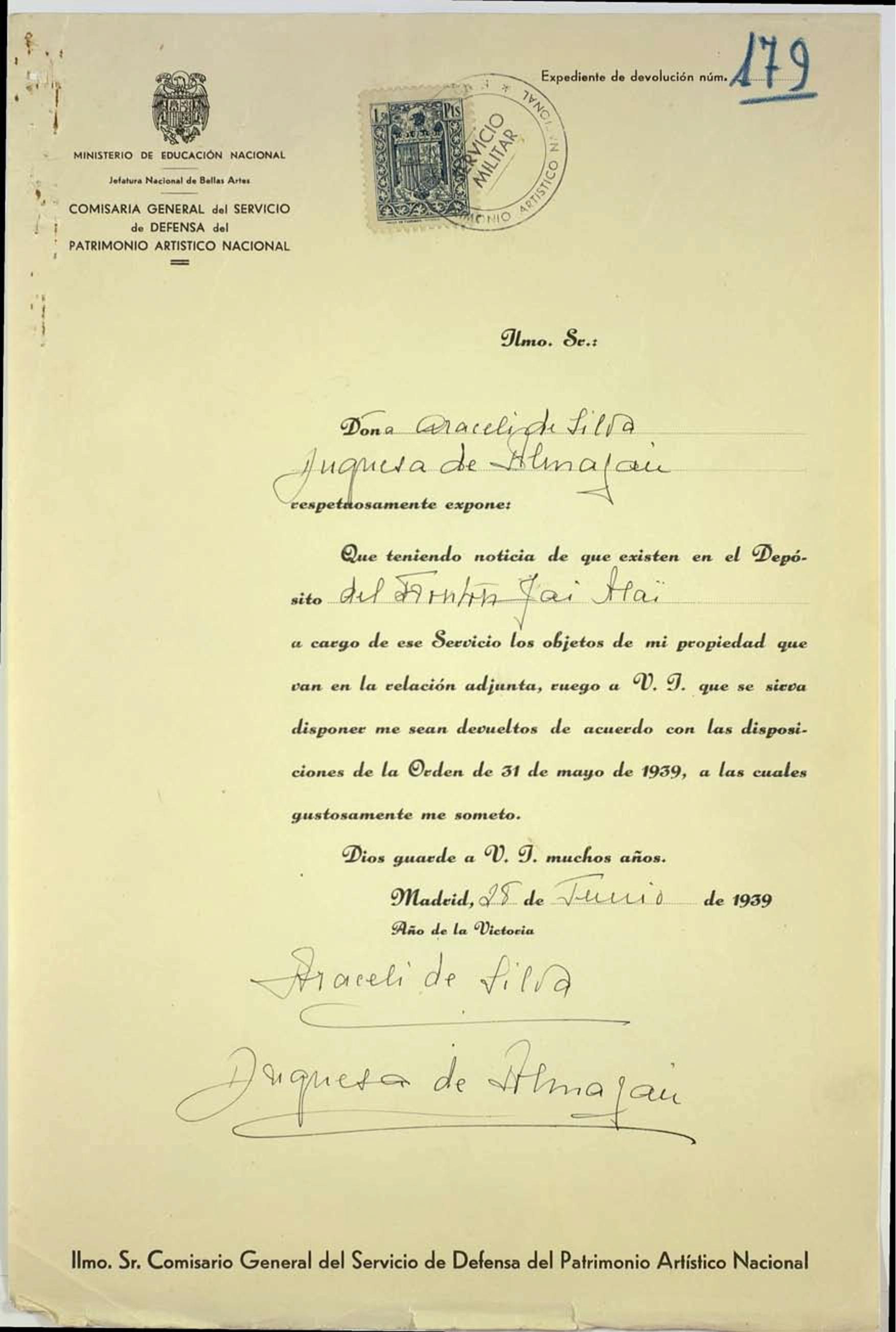 Expediente de devolución de Araceli de Silva, duquesa de Almazán