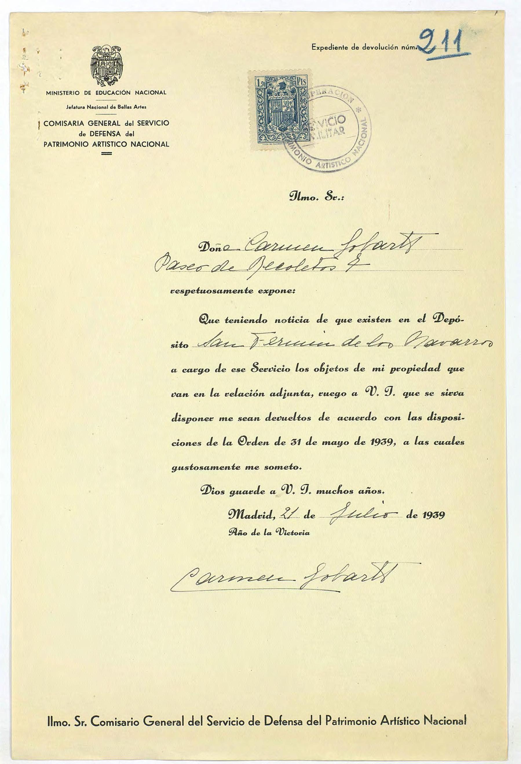 Expediente de devolución de Carmen Luque, viuda de Gobartt