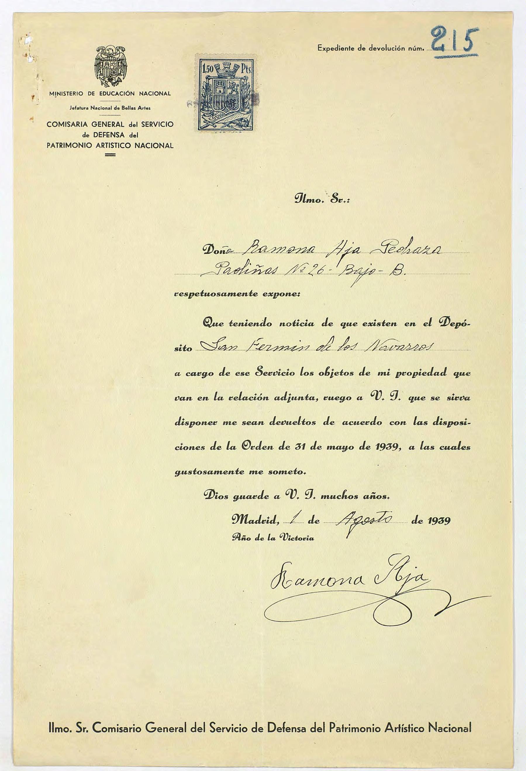 Expediente de devolución de Ramona Aja Pedraza