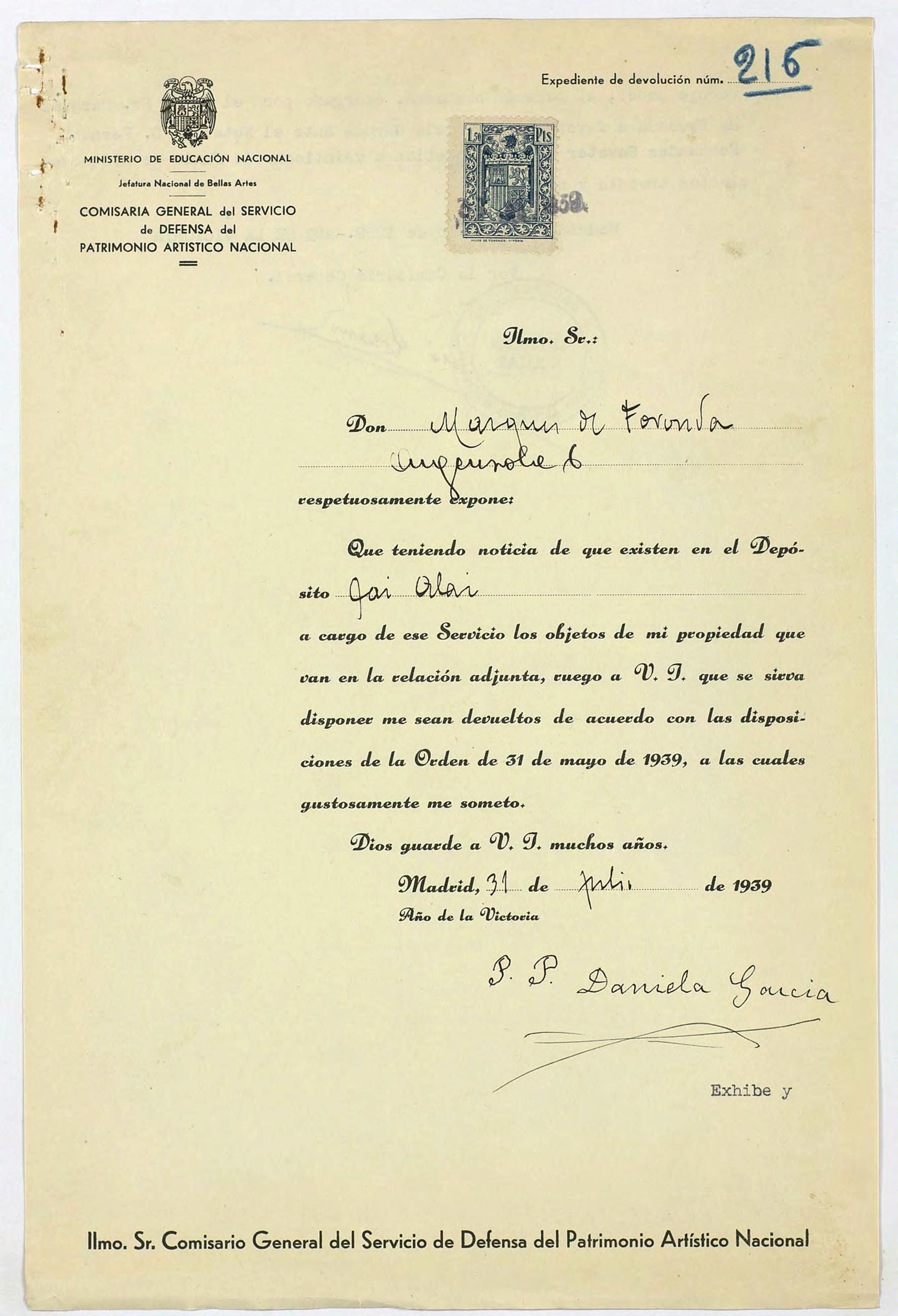 Expediente de devolución de Mariano Foronda, marqués de Foronda