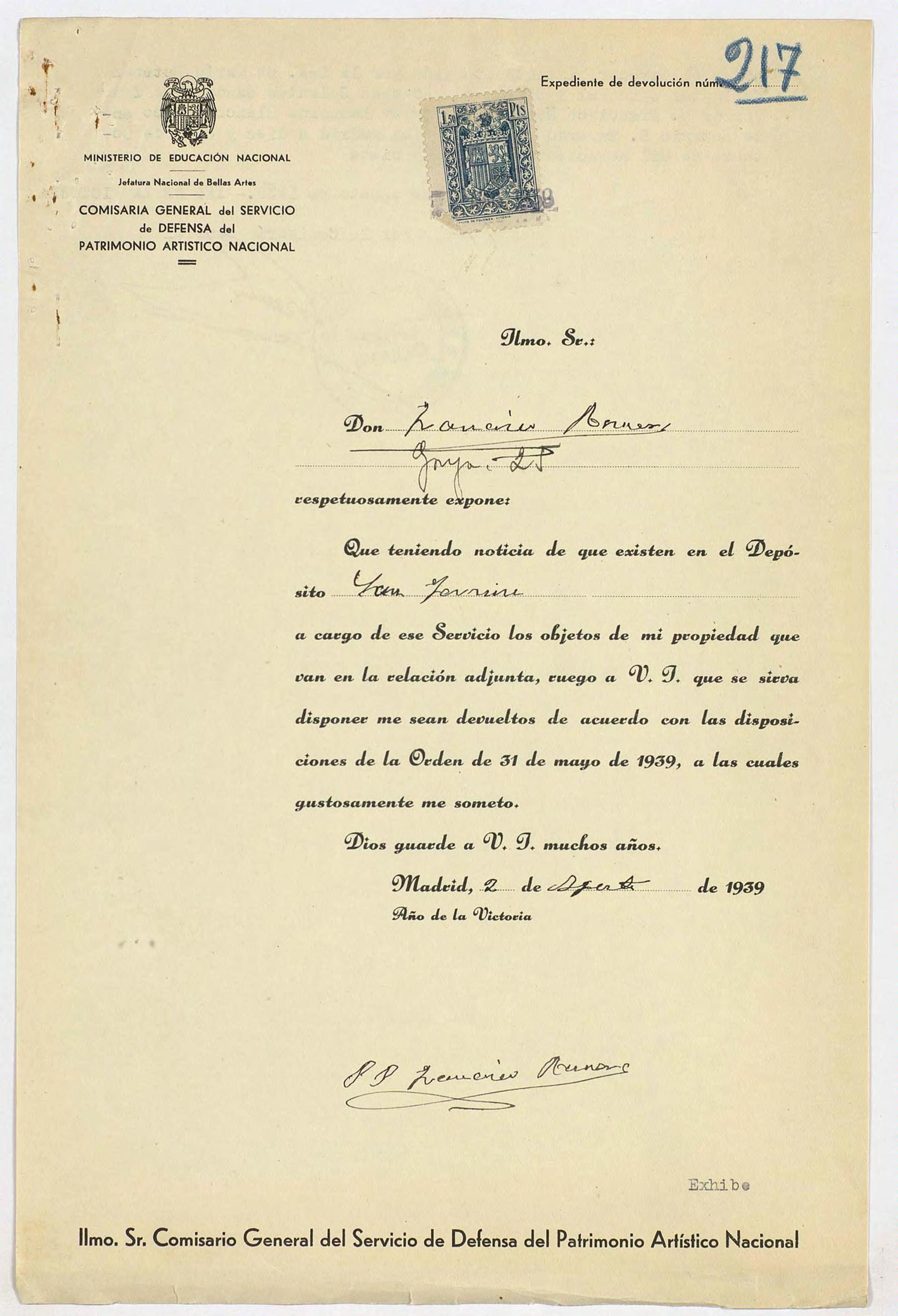 Expediente de devolución de Saturnino Esteban Collantes, conde de Esteban Collantes
