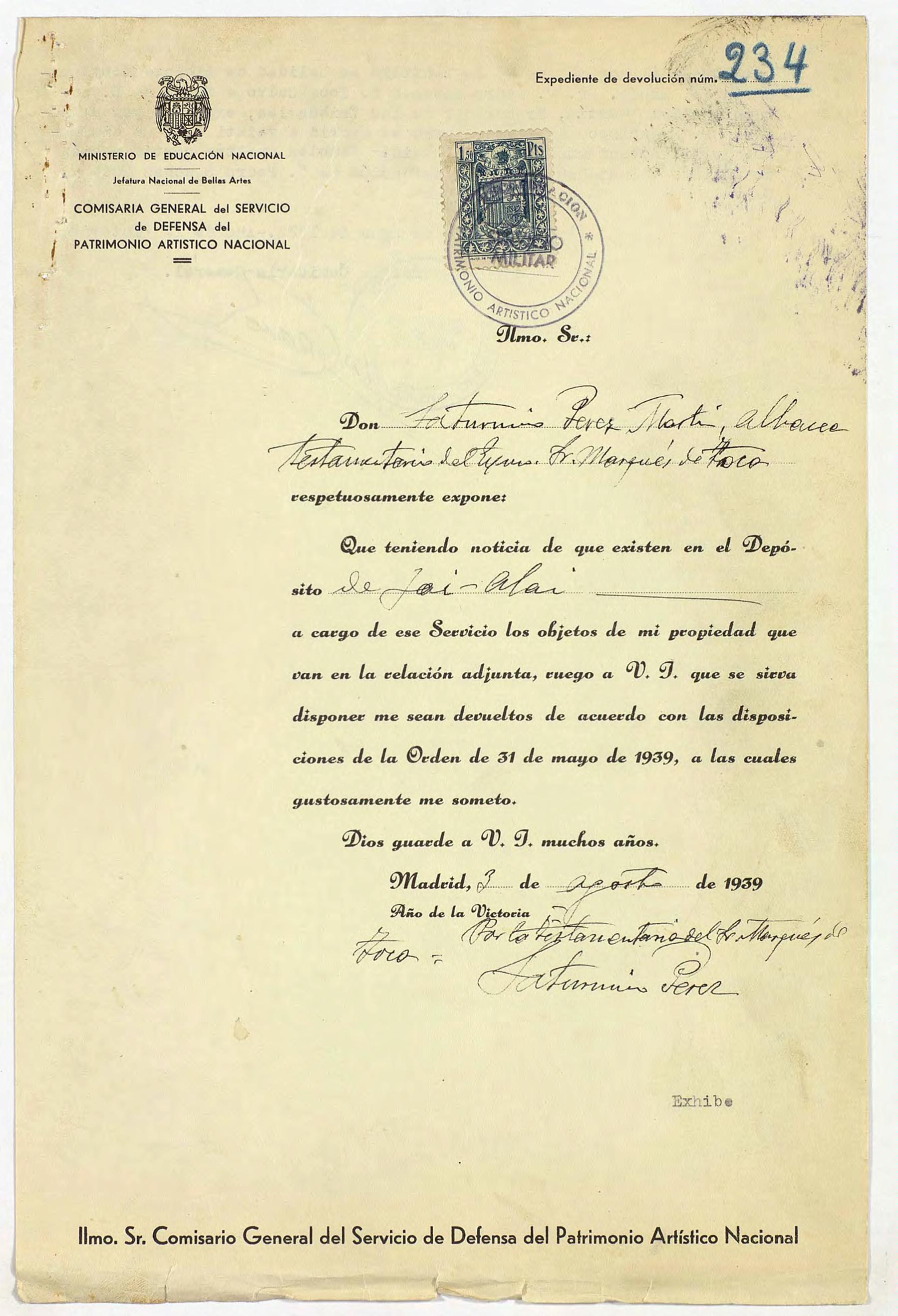 Expediente de devolución de Pedro Sánchez de Toca Calvo, marqués de Toca