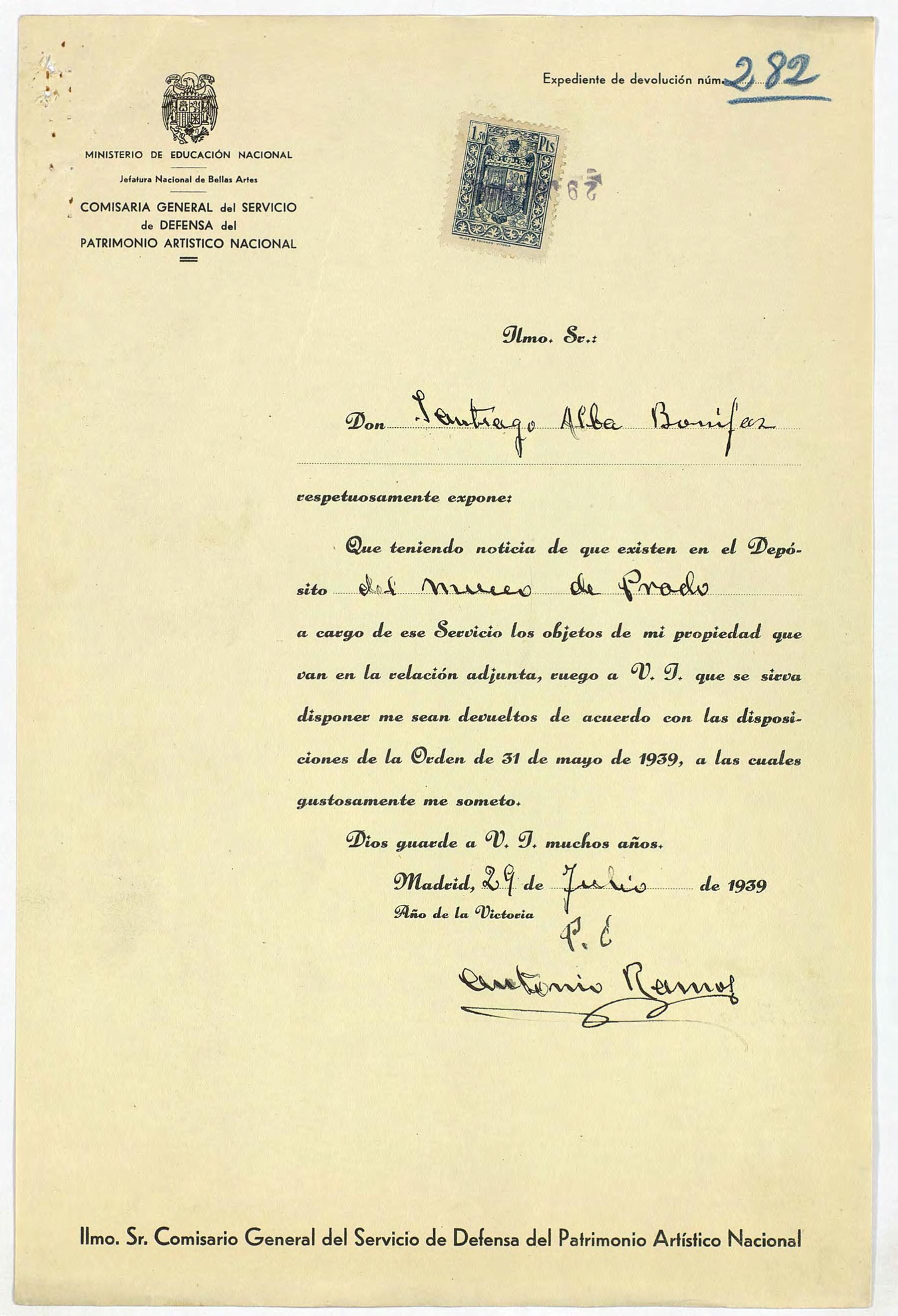 Expediente de devolución de Santiago Alba Bonifaz
