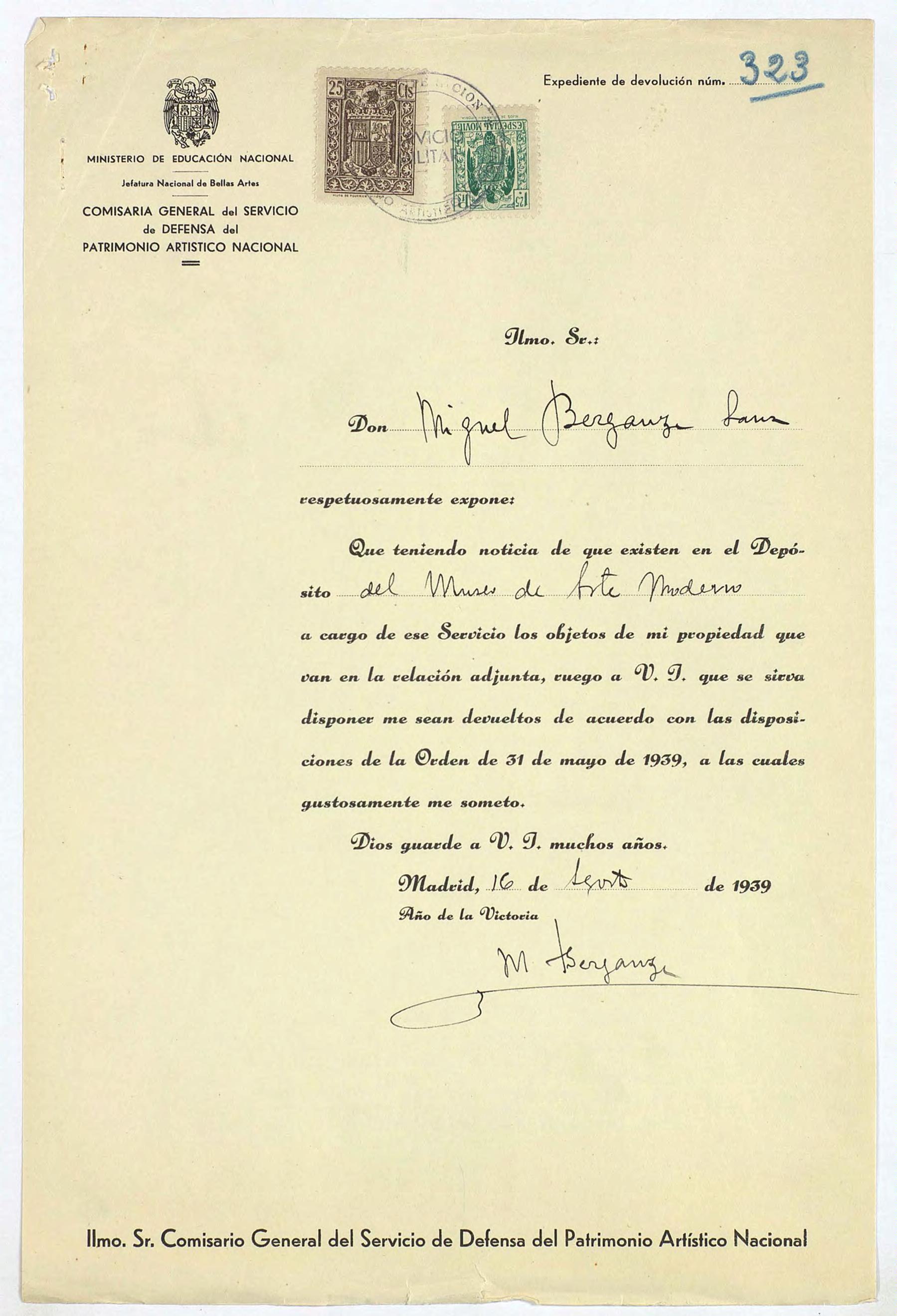Expediente de devolución de Miguel Berganza Sanz