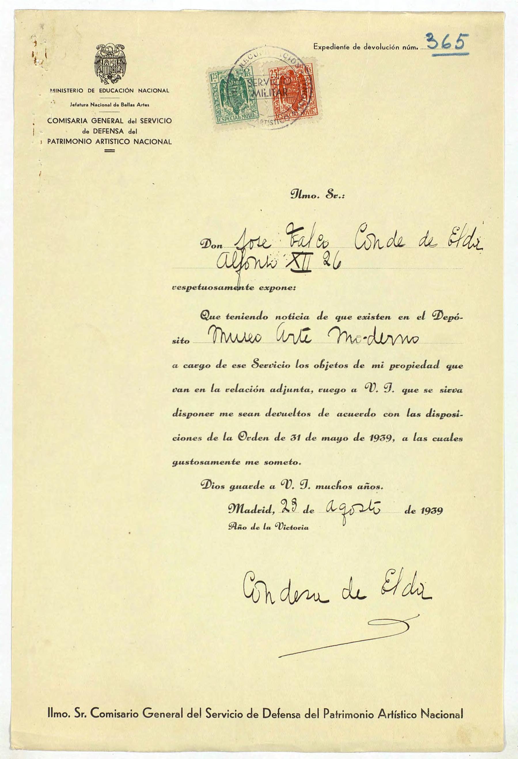 Expediente de devolución de José Falcó y Álvarez de Toledo, conde de Elda