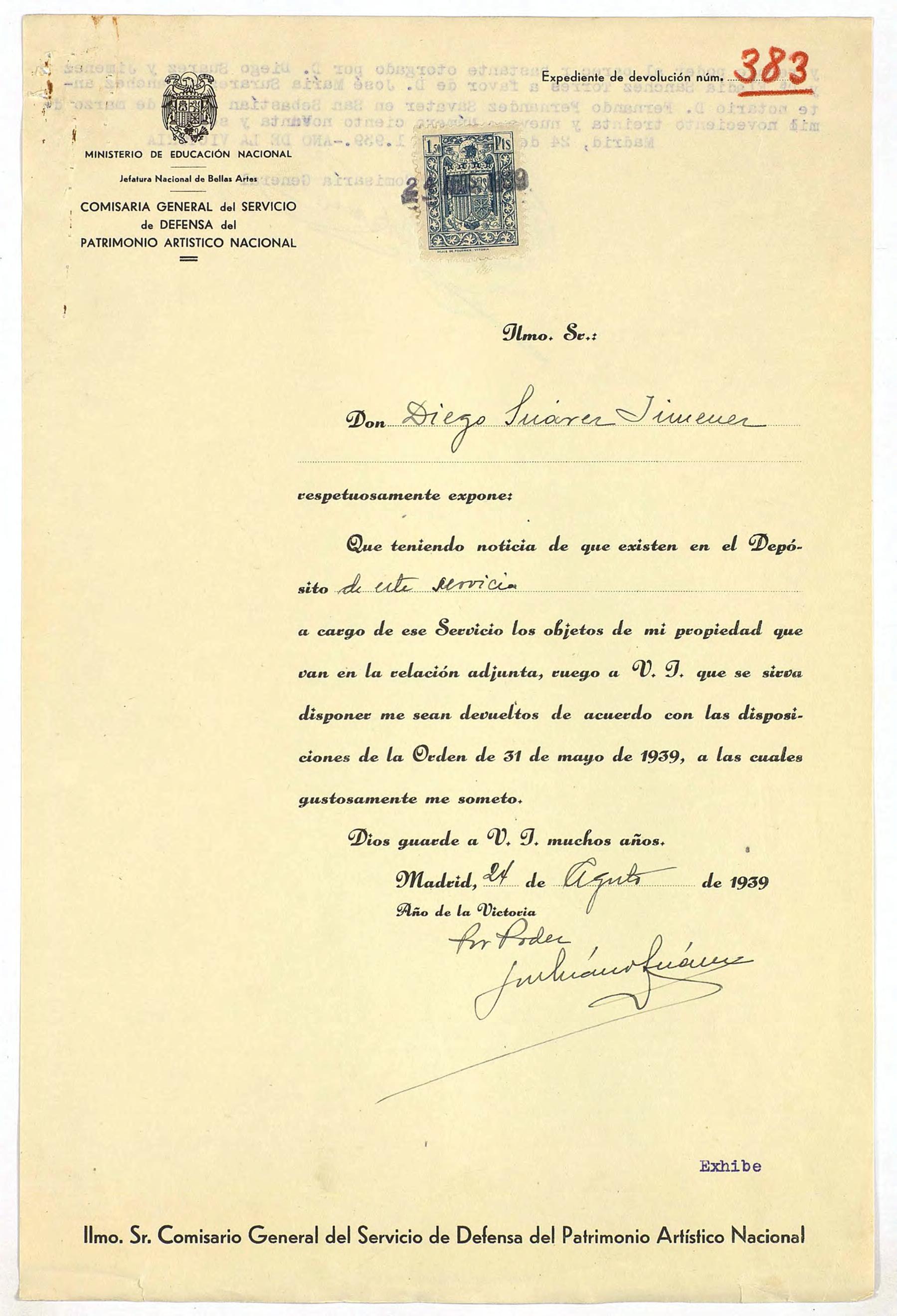 Expediente de devolución de Diego Suárez Jiménez