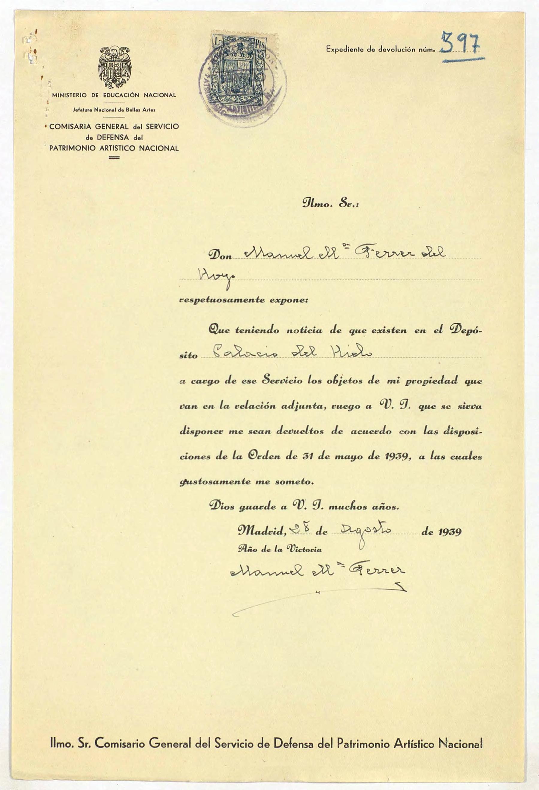 Expediente de devolución de Manuel María Ferrer del Hoyo