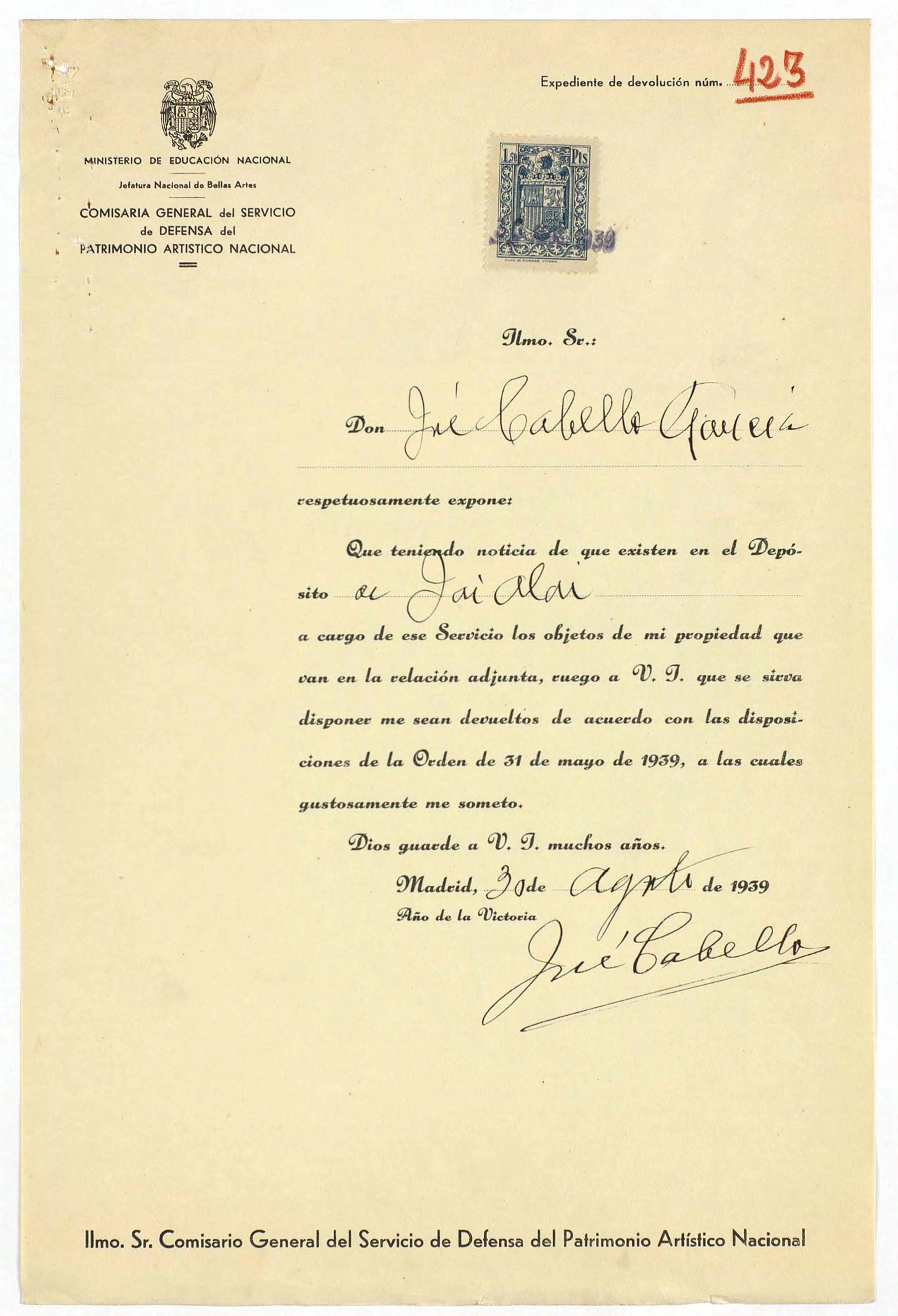 Expediente de devolución de José Cabello García