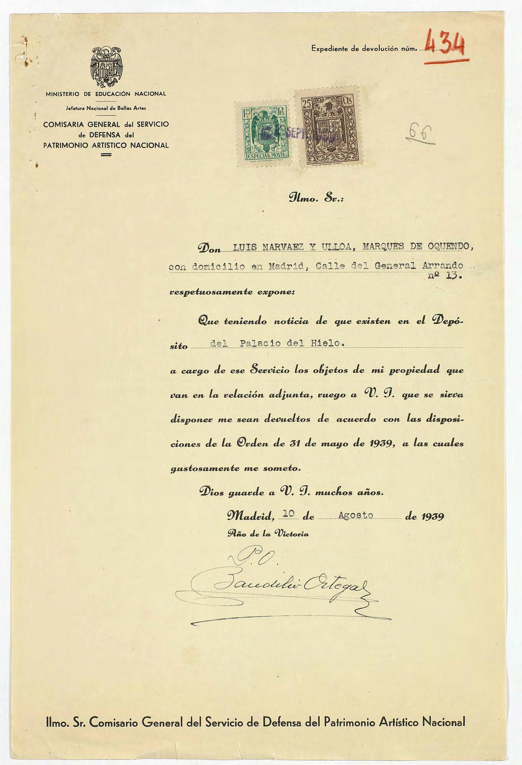 Expediente de devolución de Luis Narváez y Ulloa, marqués de Oquendo