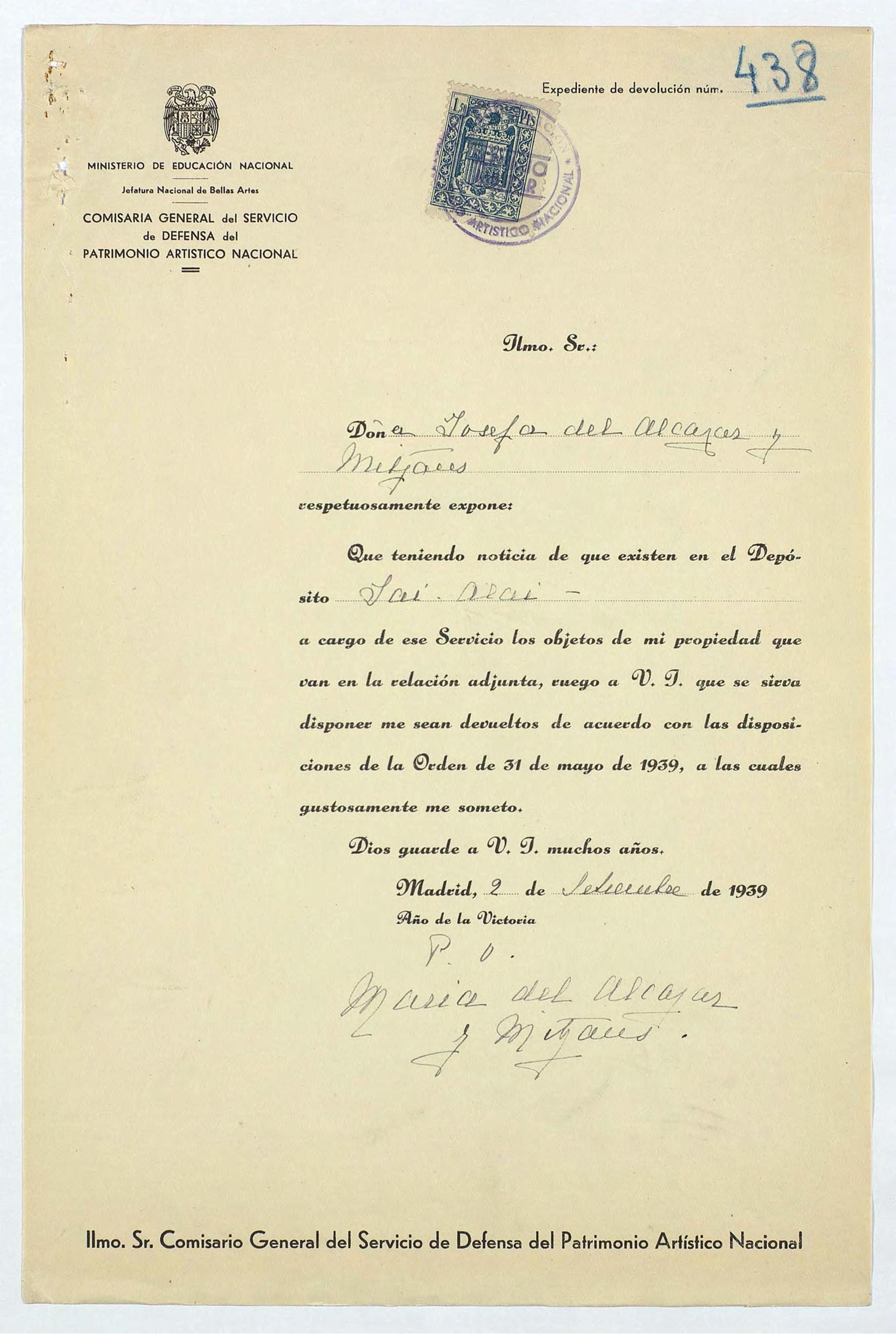 Expediente de devolución de Josefa del Alcázar, condesa de Crescente