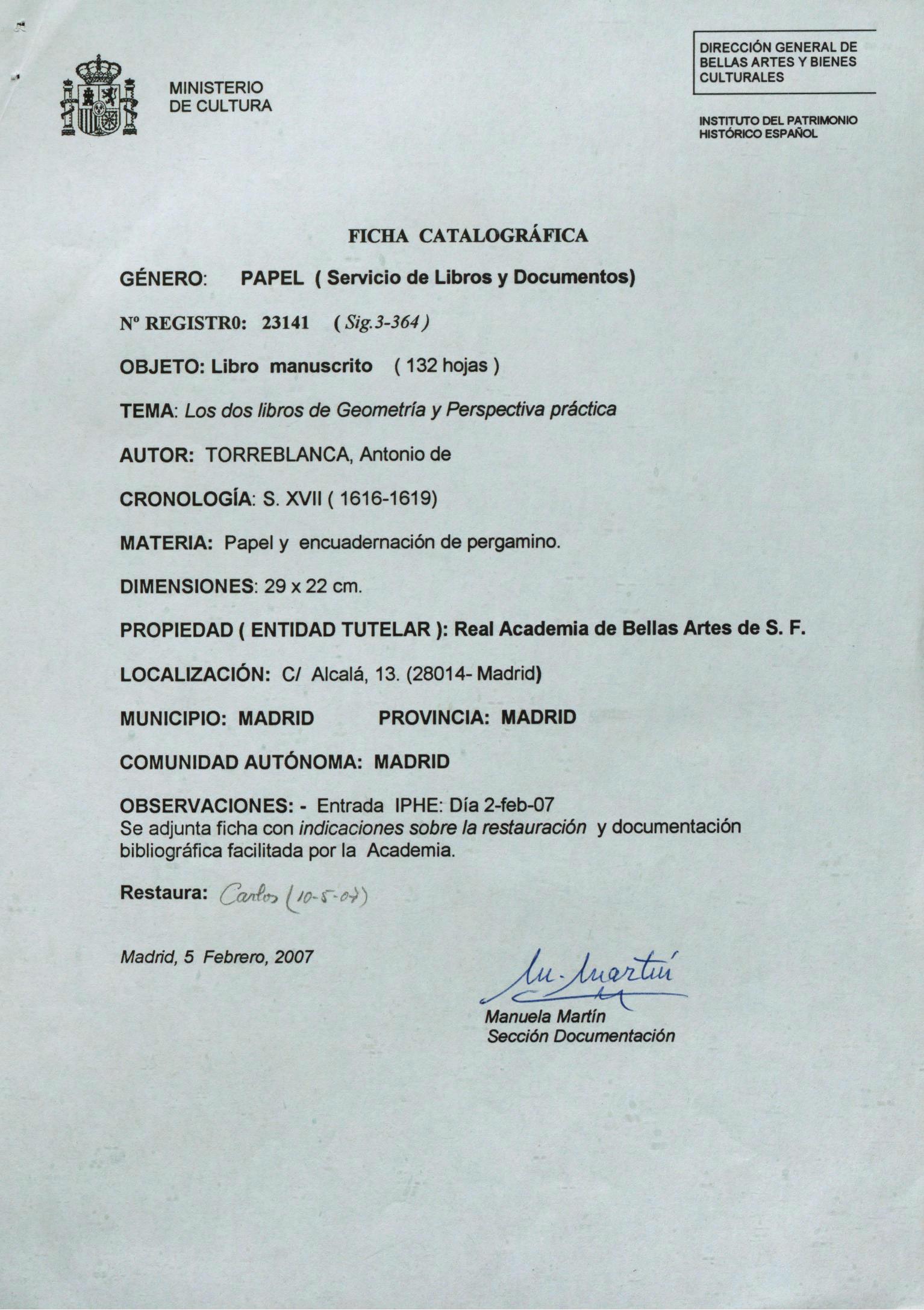 Restauración del manuscrito "Dos libros de geometría y perspectiva práctica" e incunable "Liber Chronicarum", procedentes de la Real Academia de Bellas Artes de San Fernando (Madrid)