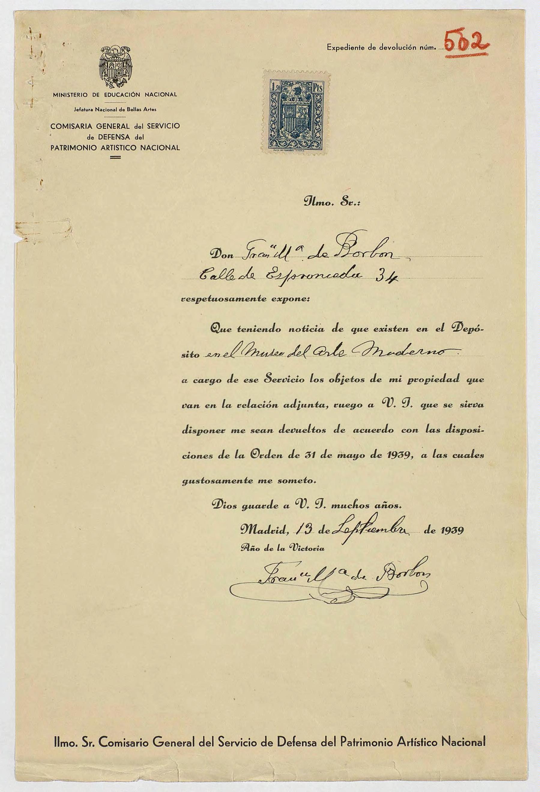 Expedientes de devolución de obras de arte