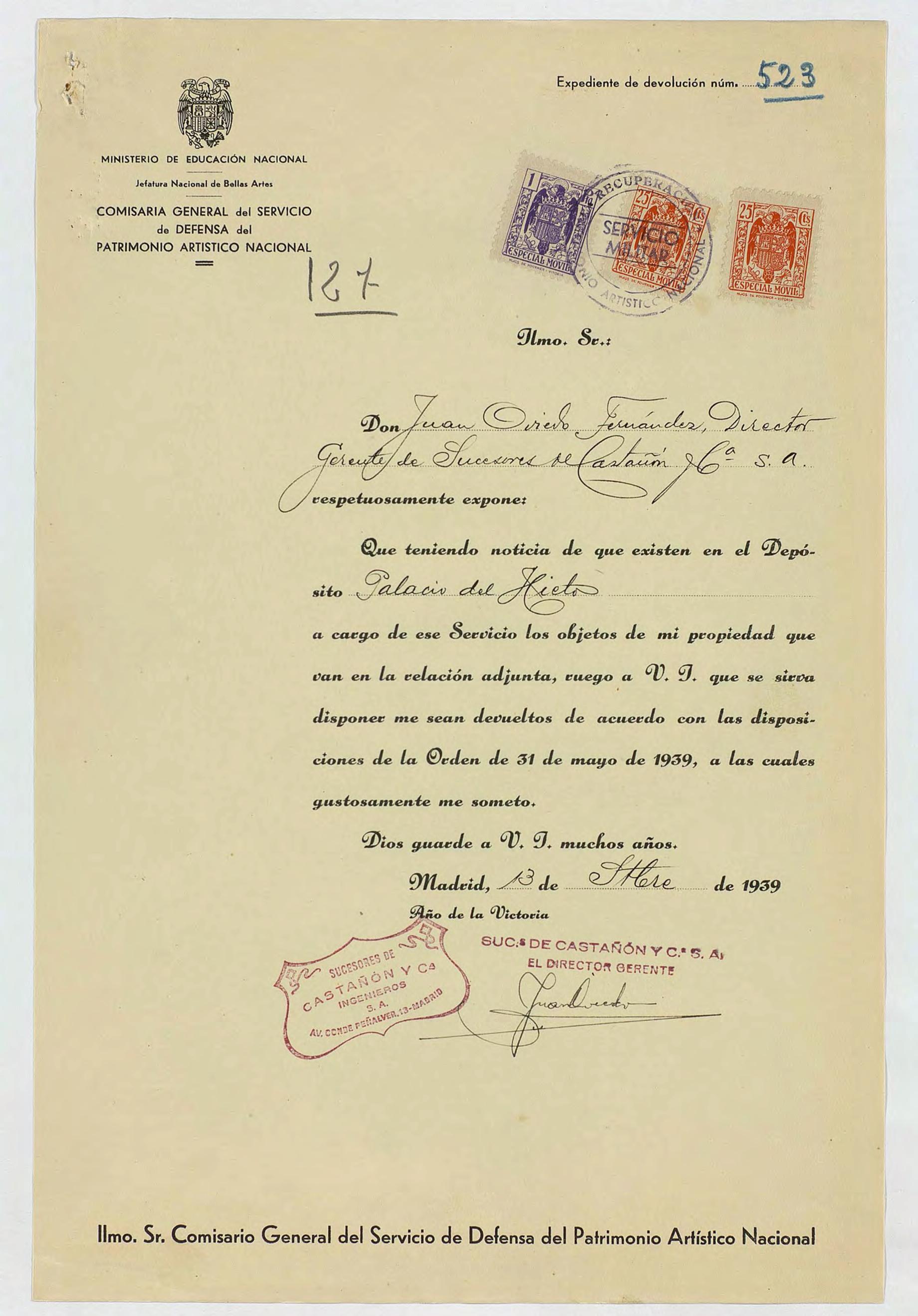 Expediente de devolución de Juan Oviedo Fernández, Director Gerente de Sucesores de Castañón y Cª