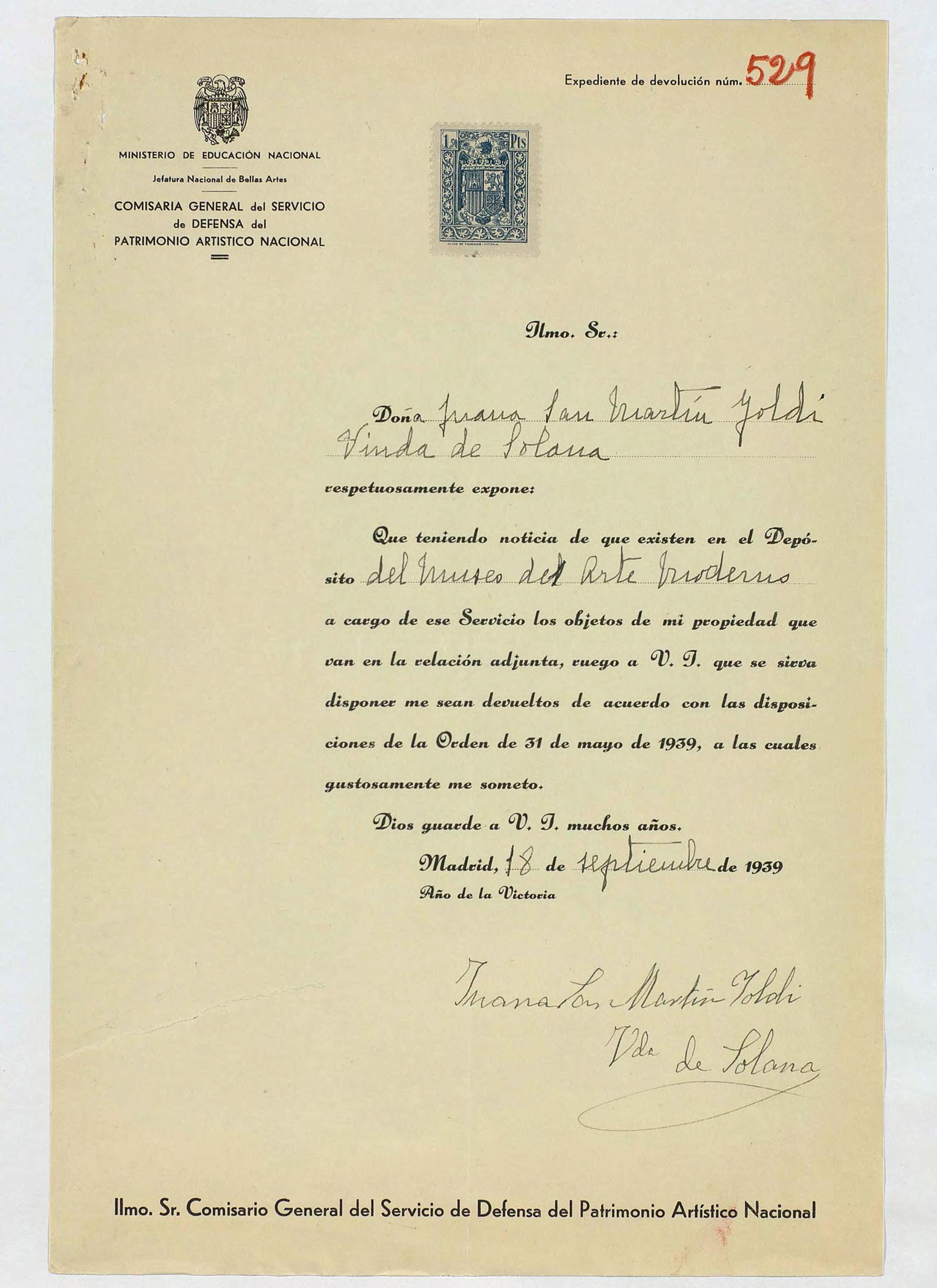 Expediente de devolución de Juana San Martín, viuda de Solana