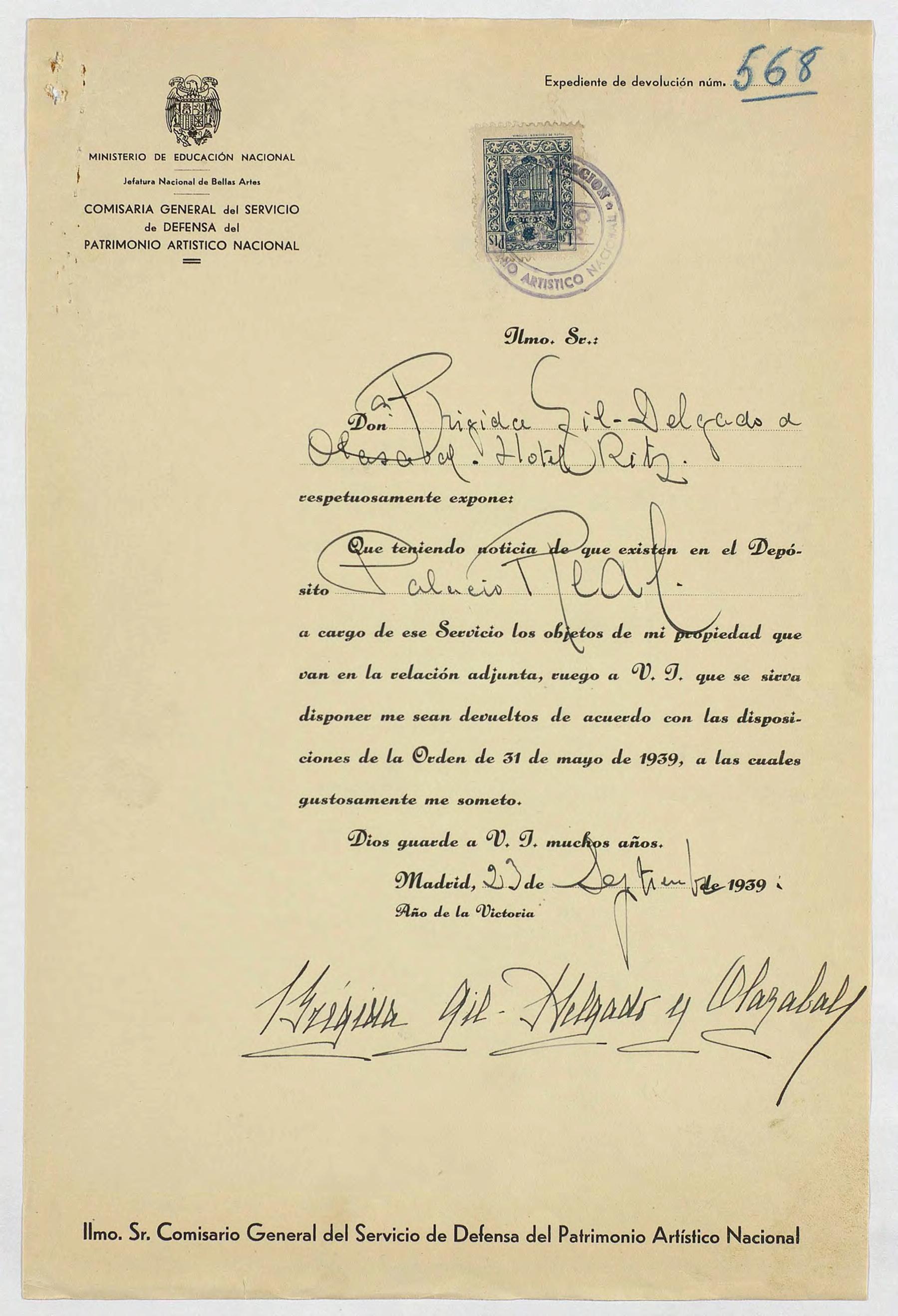 Expediente de devolución de Brígida Gil-Delgado de Olazábal