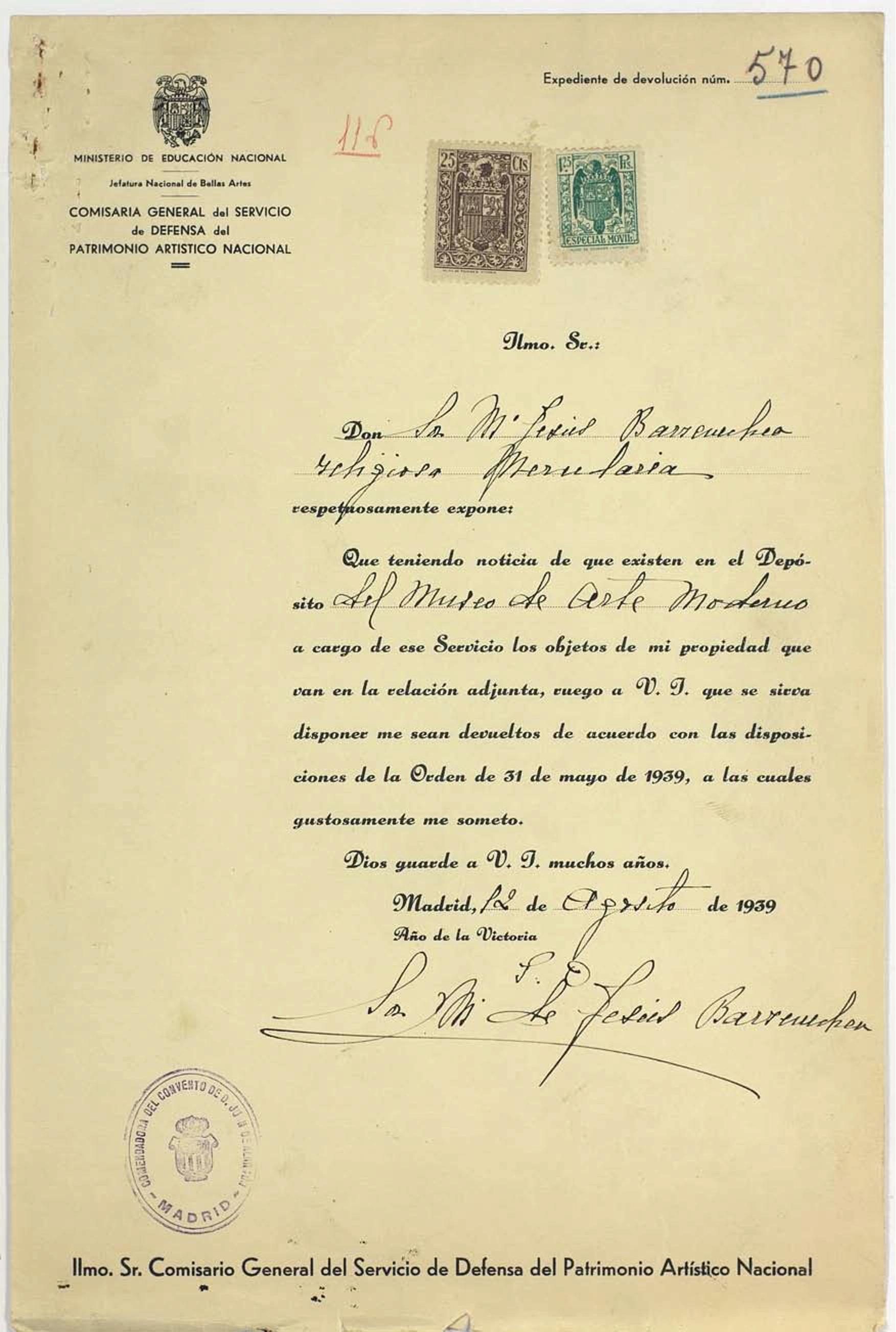 Expediente de devolución de las Religiosas Mercedarias de Don Juan de Alarcón (Madrid)