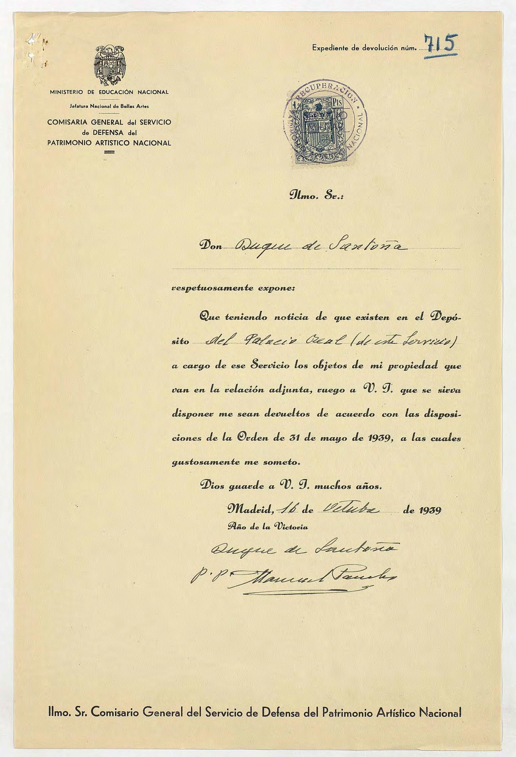Expediente de devolución de Juan Manuel Mitjans Murrieta, duque de Santoña