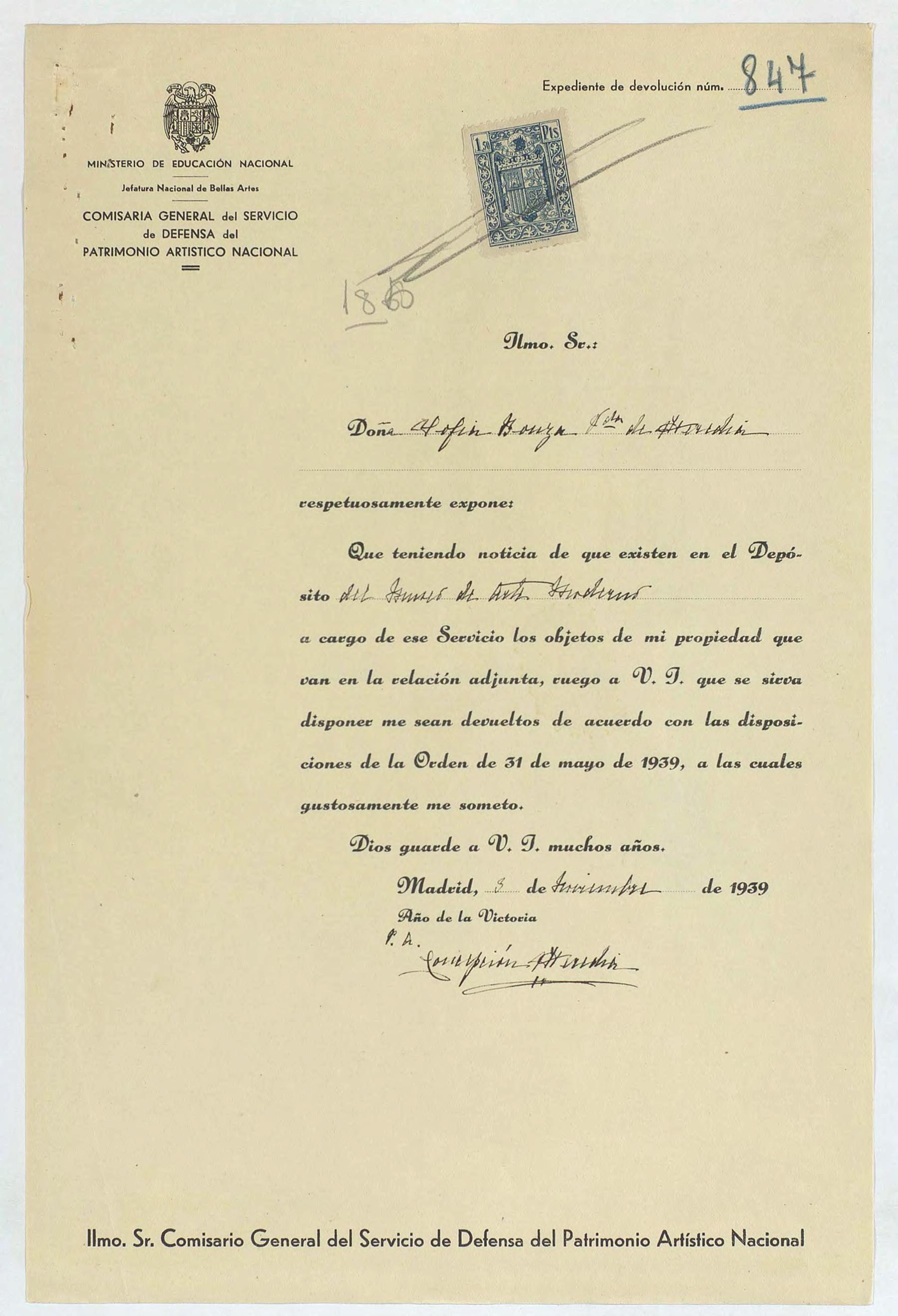 Expediente de devolución de Sofía Bouza, viuda de Heredia
