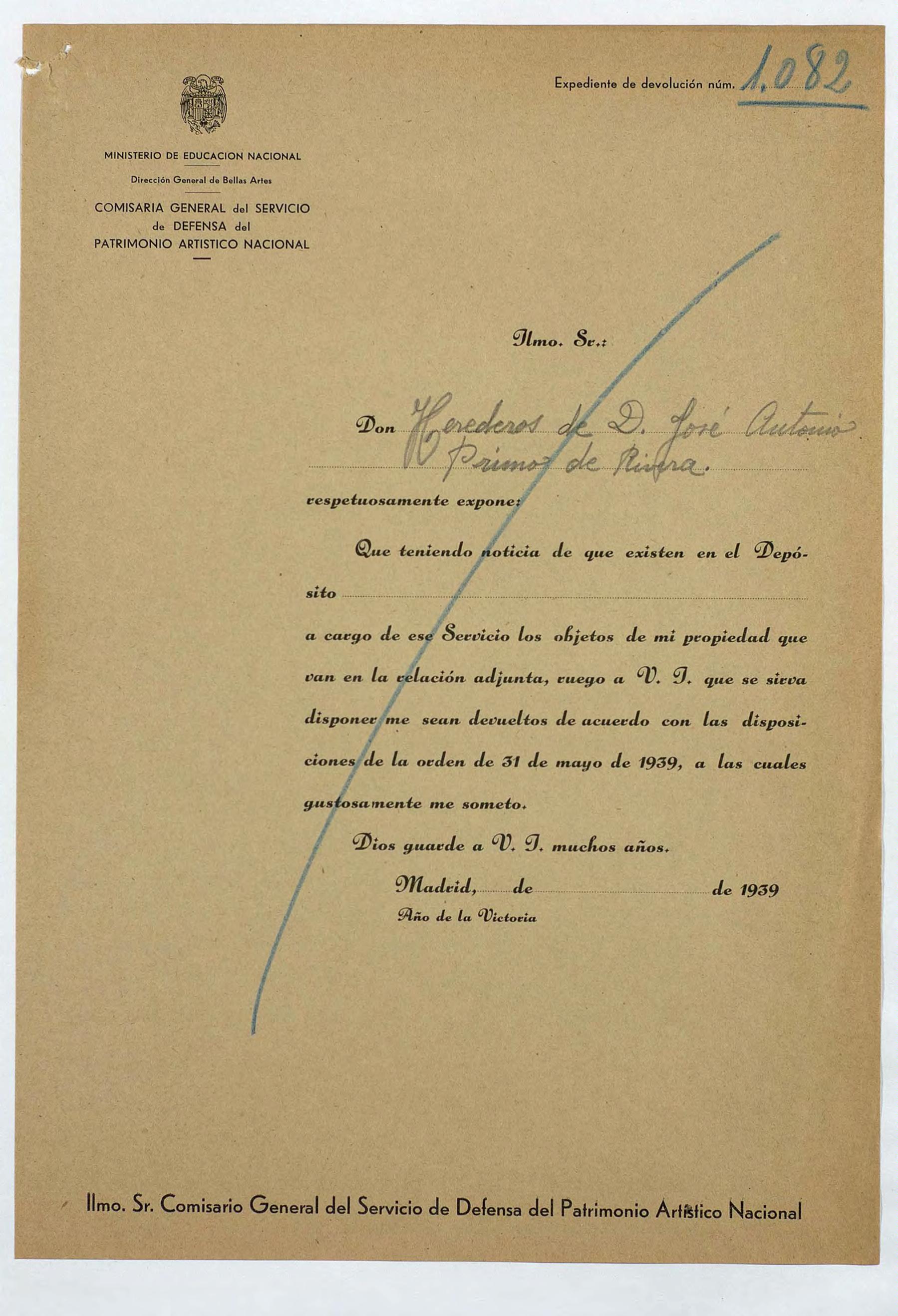 Expediente de devolución de los herederos de José Antonio Primo de Rivera