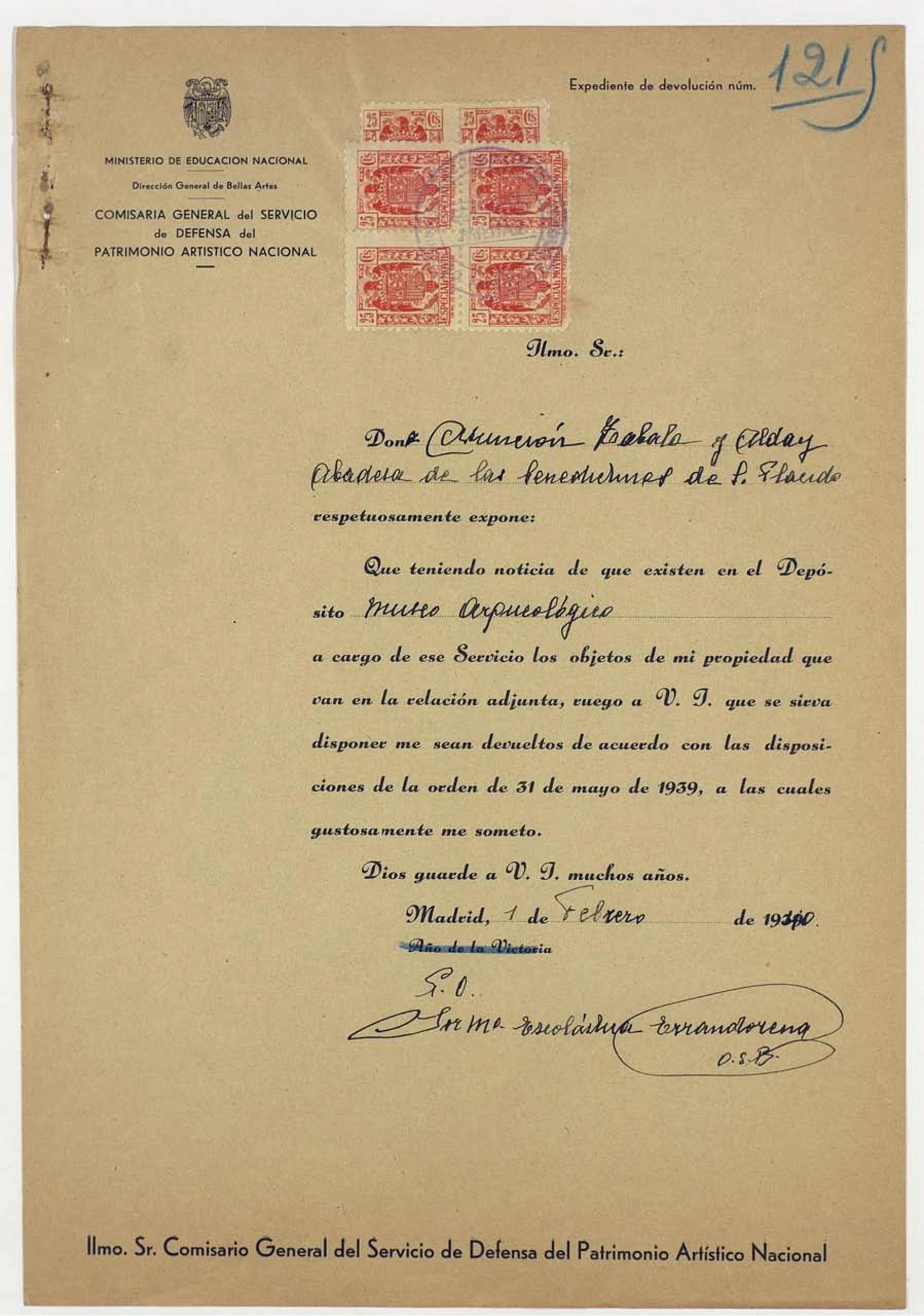 Expediente de devolución del Convento de las Religiosas Benedictinas de San Plácido (Madrid)