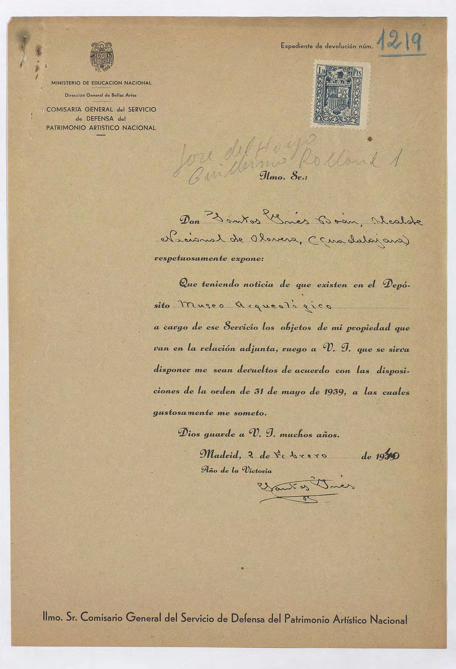 Expediente de devolución del Ayuntamiento de Alovera (Guadalajara)