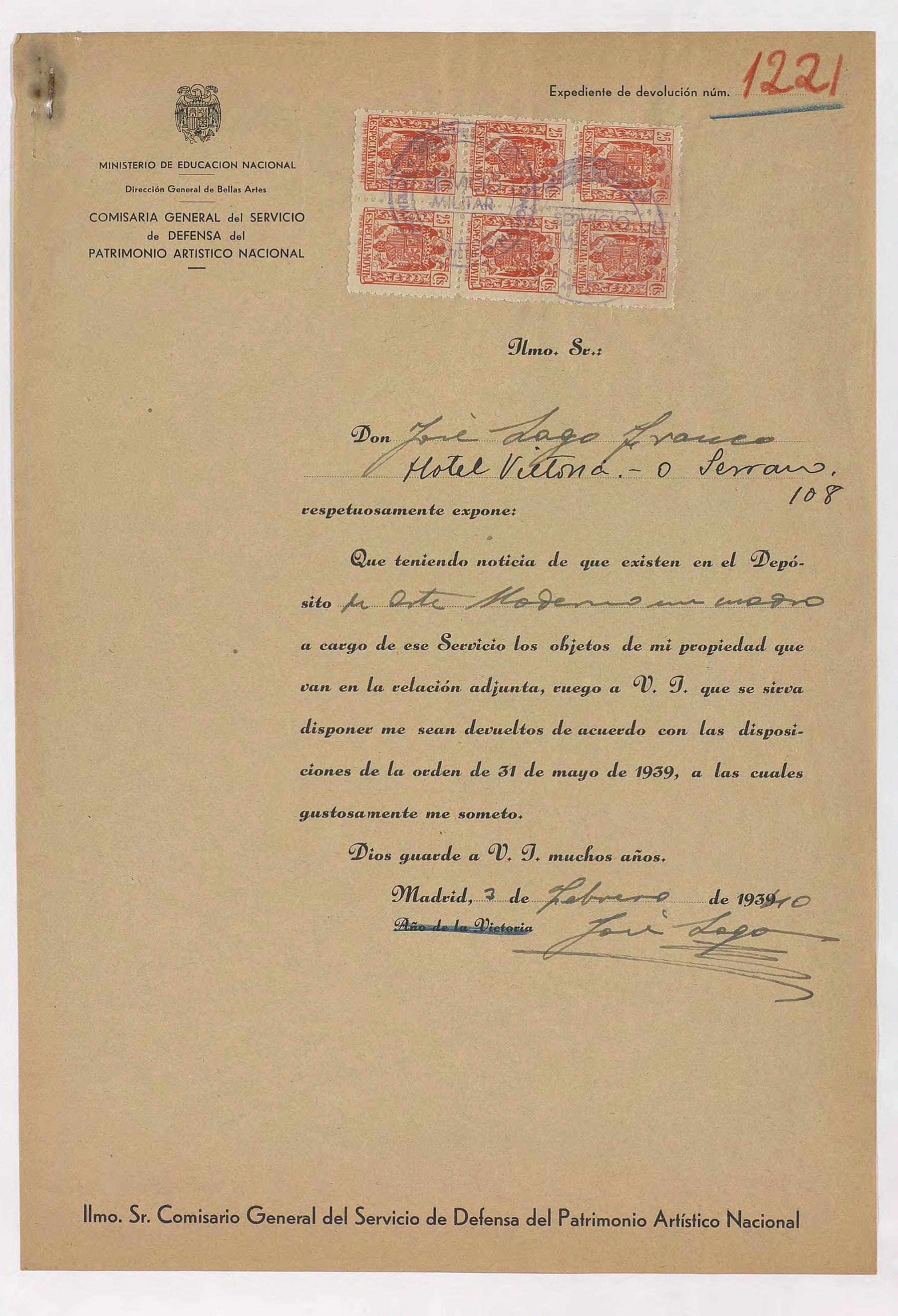Expedientes de devolución de obras de arte
