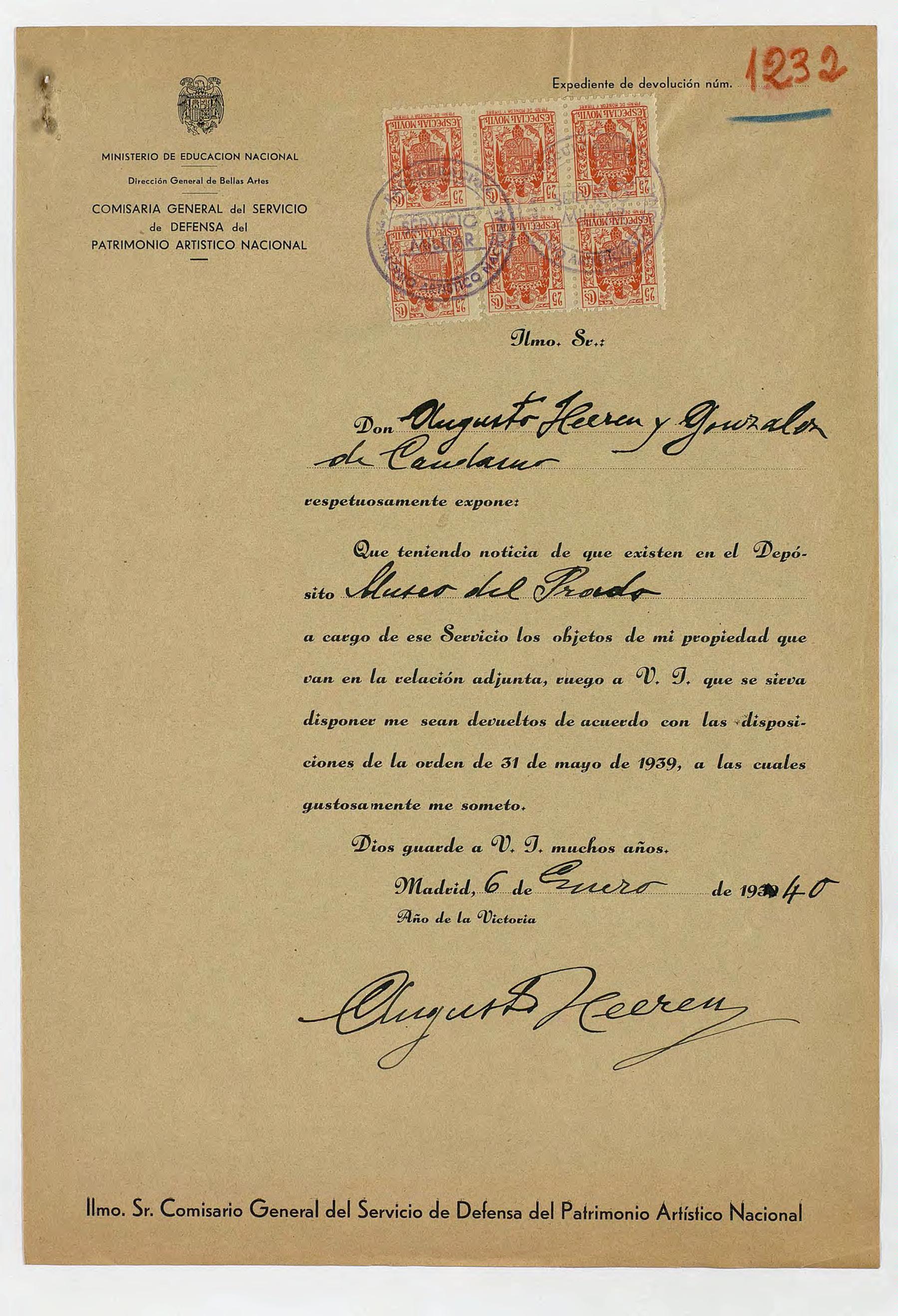 Expediente de devolución de Augusto Heeren y González de Candamo